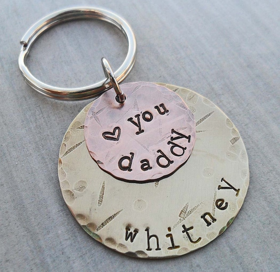 Personalized New Daddy Keychain: Hand-Stamped Copper Heart & Aluminum Disc
