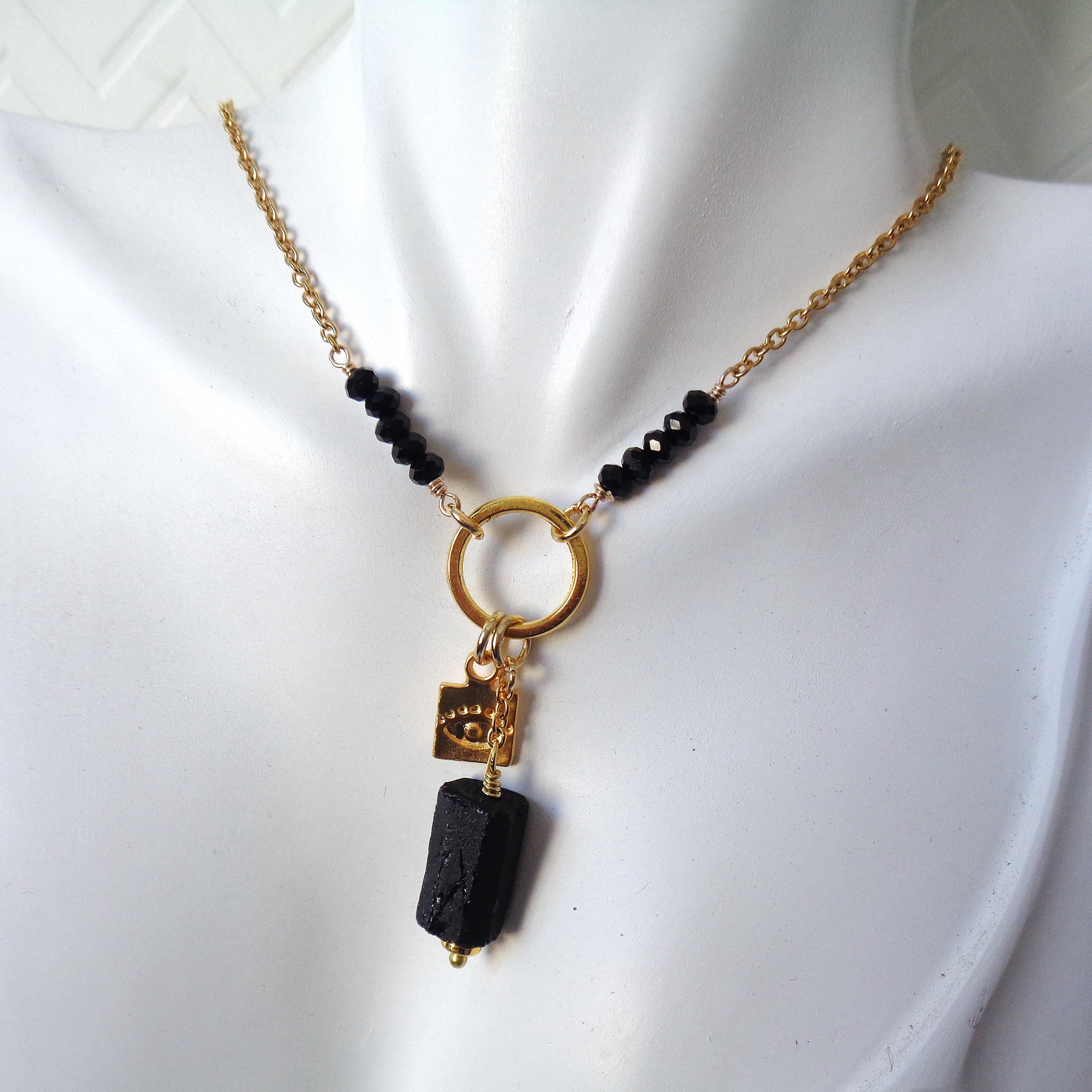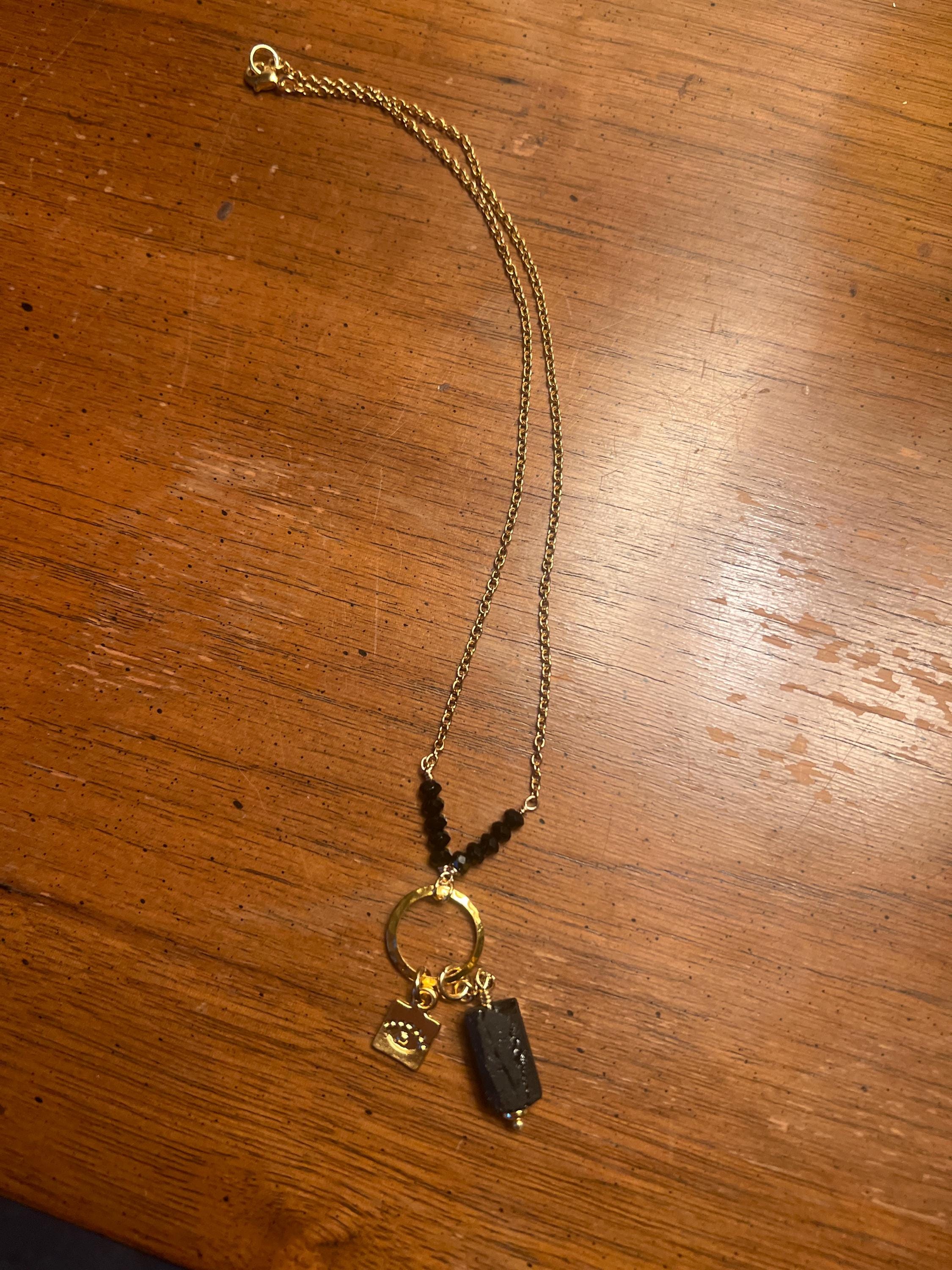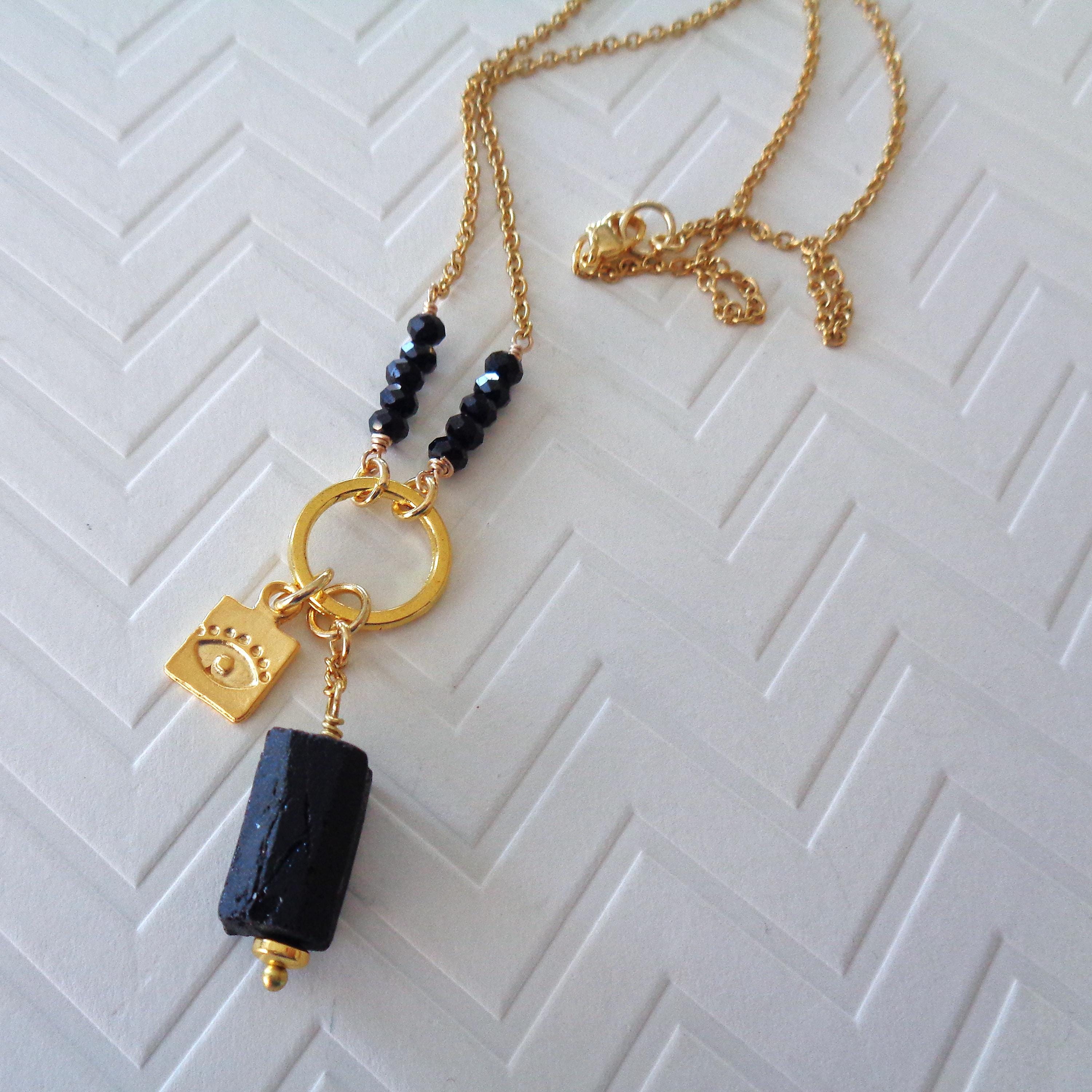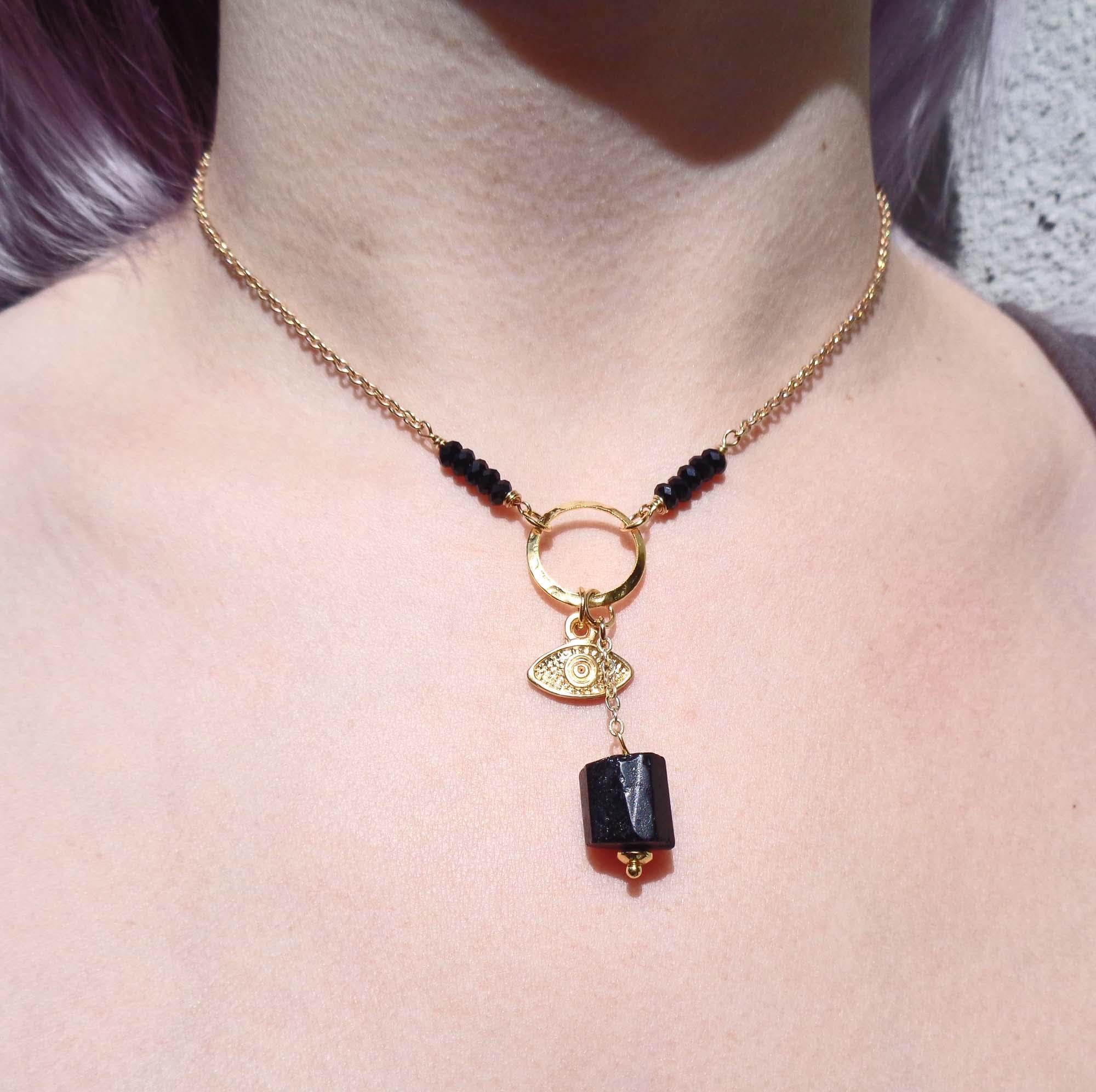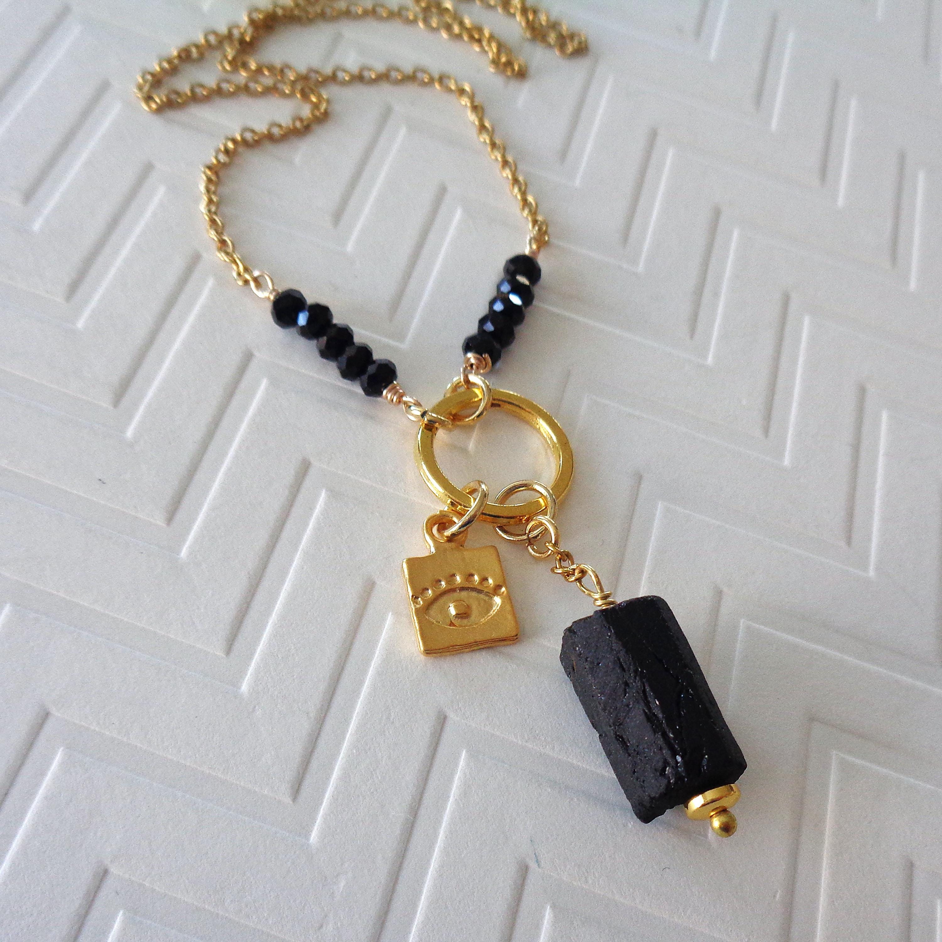 ~ ♦ ~ Protection Necklace with Black Tourmaline, Black Onyx, and Evil Eye Charm 👁🗨 ♦ ~