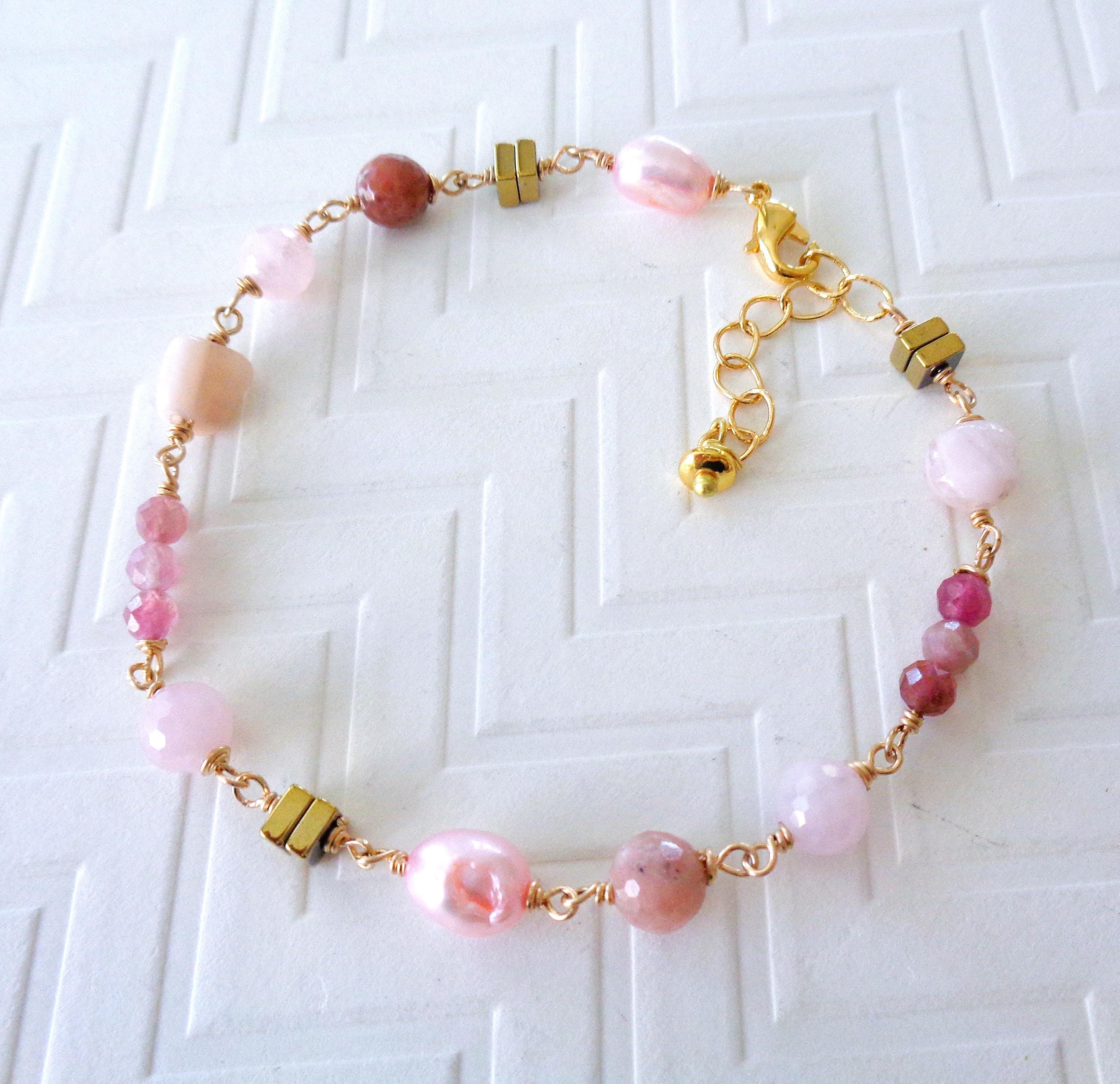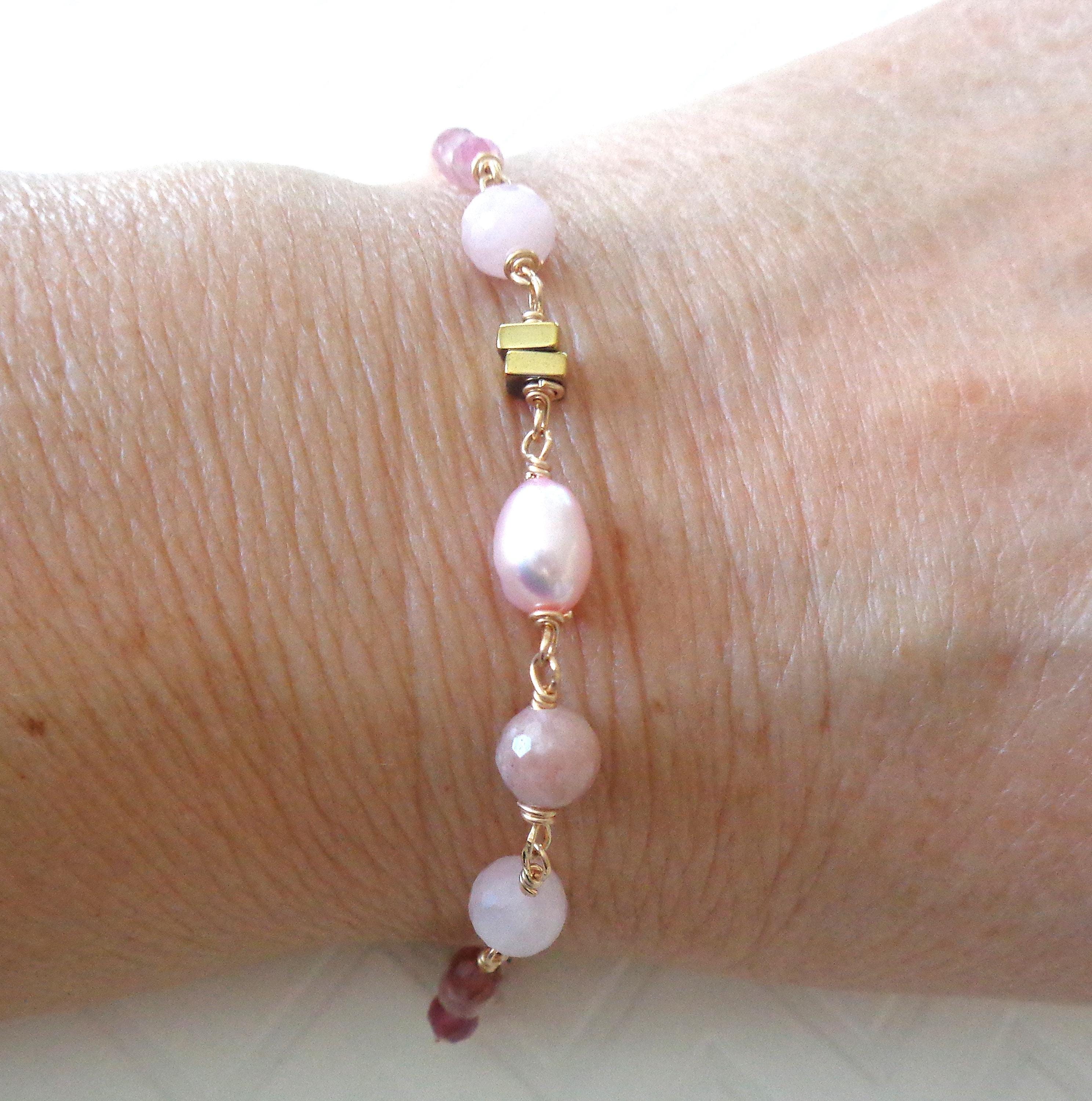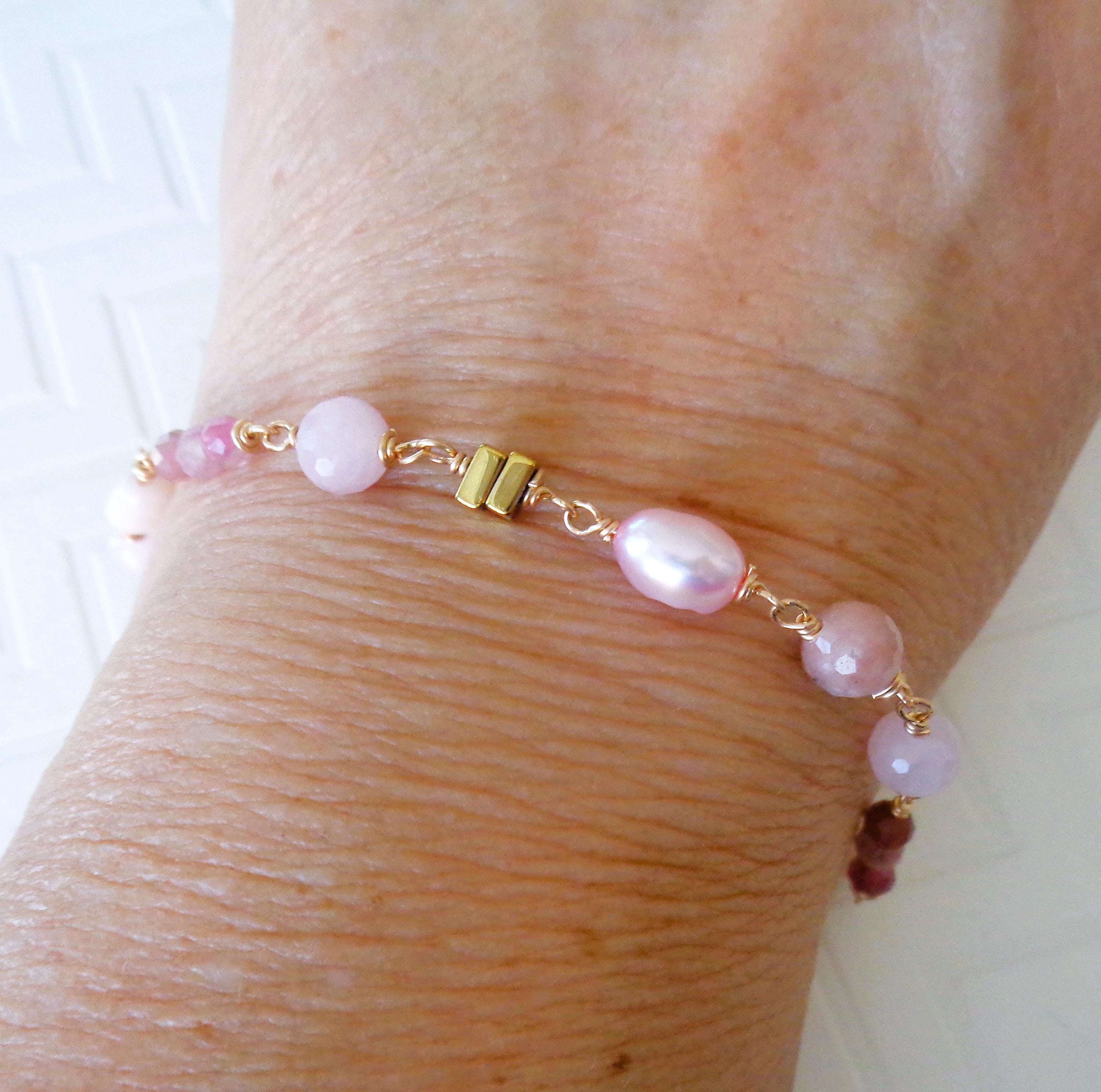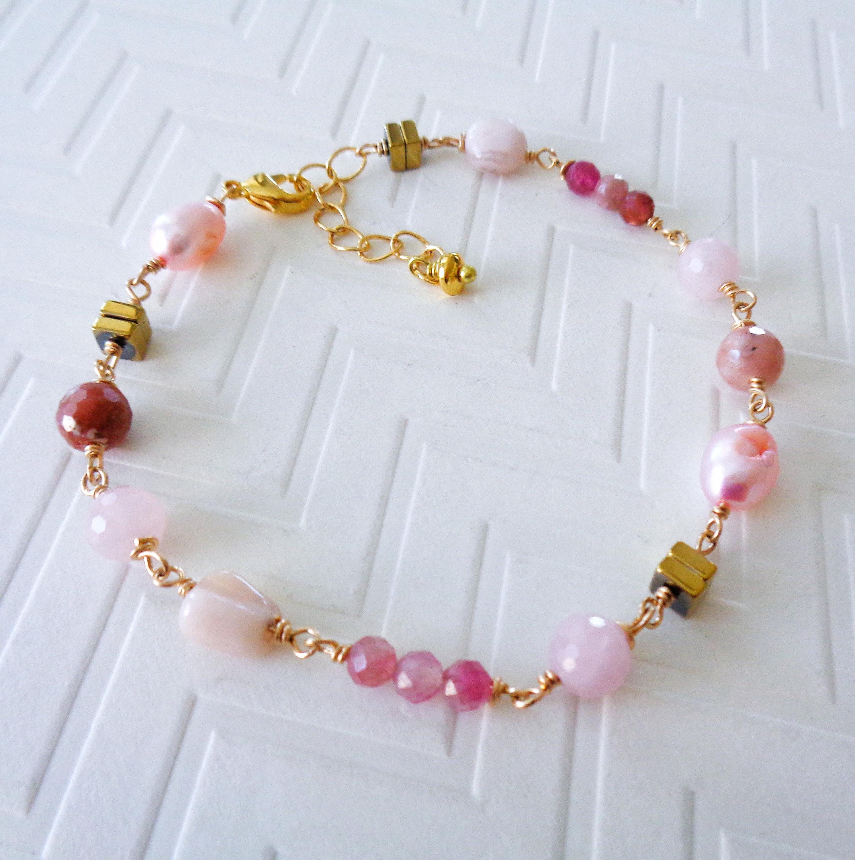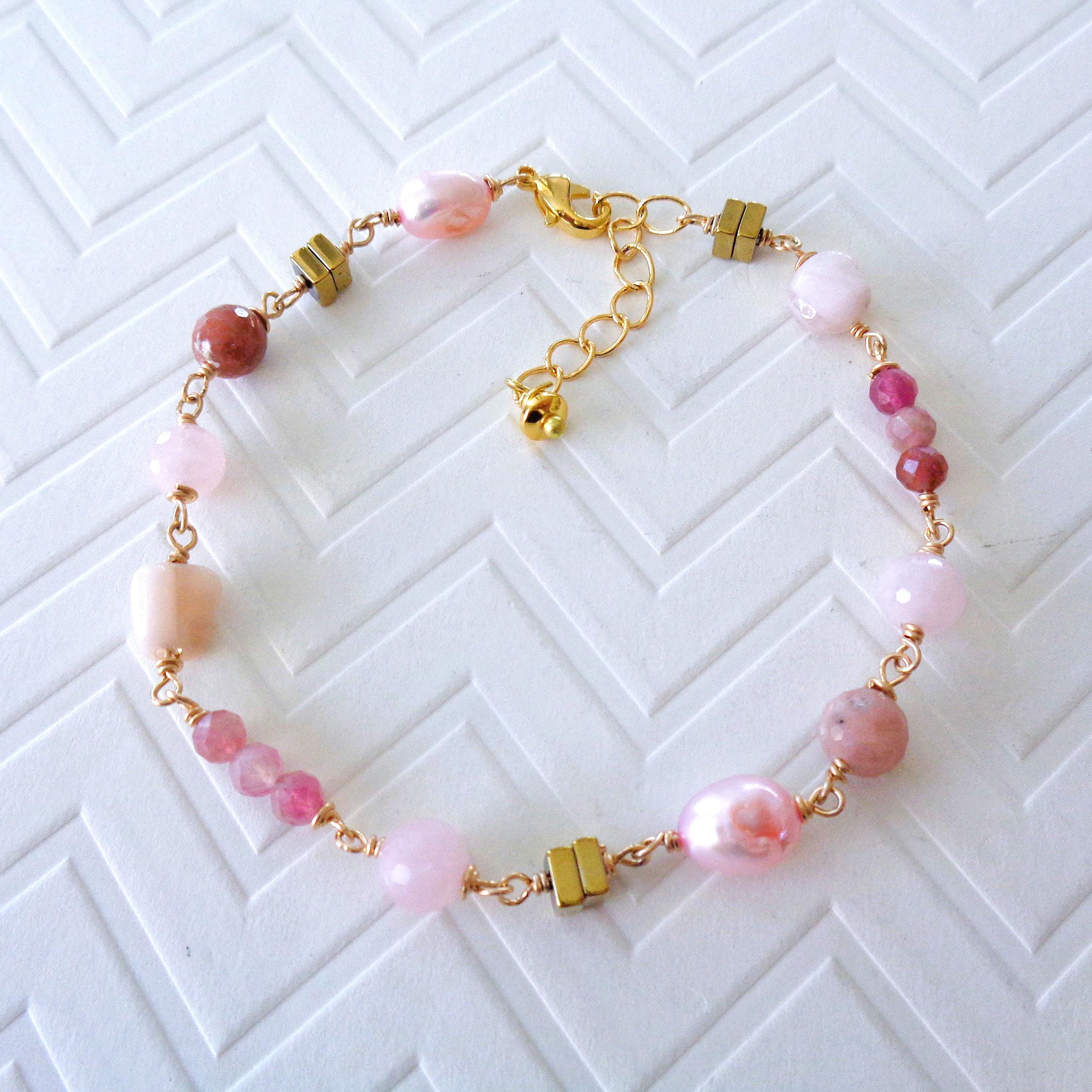 • * • Multi Crystals Bracelet in Pink Gemstones • * •