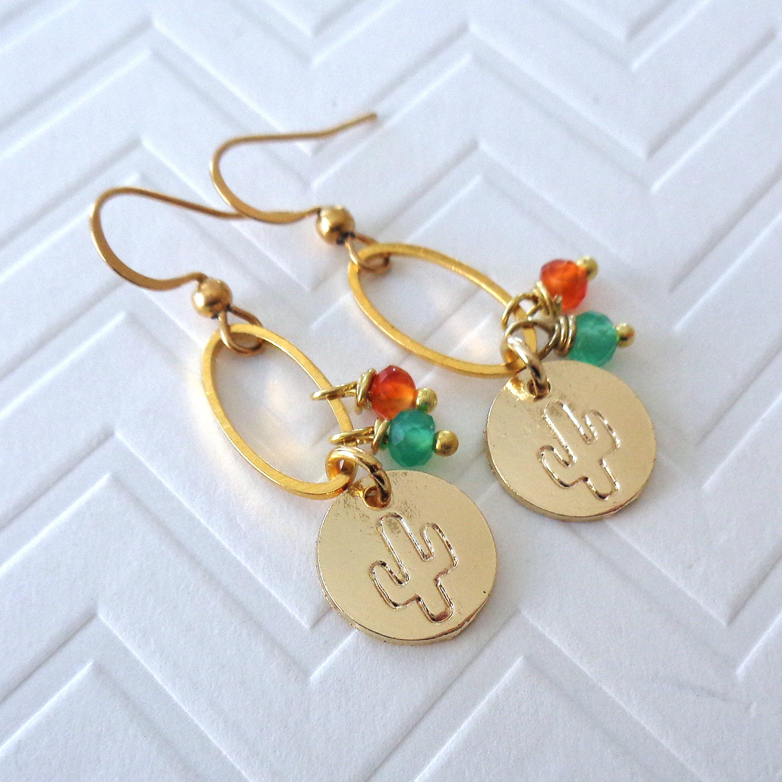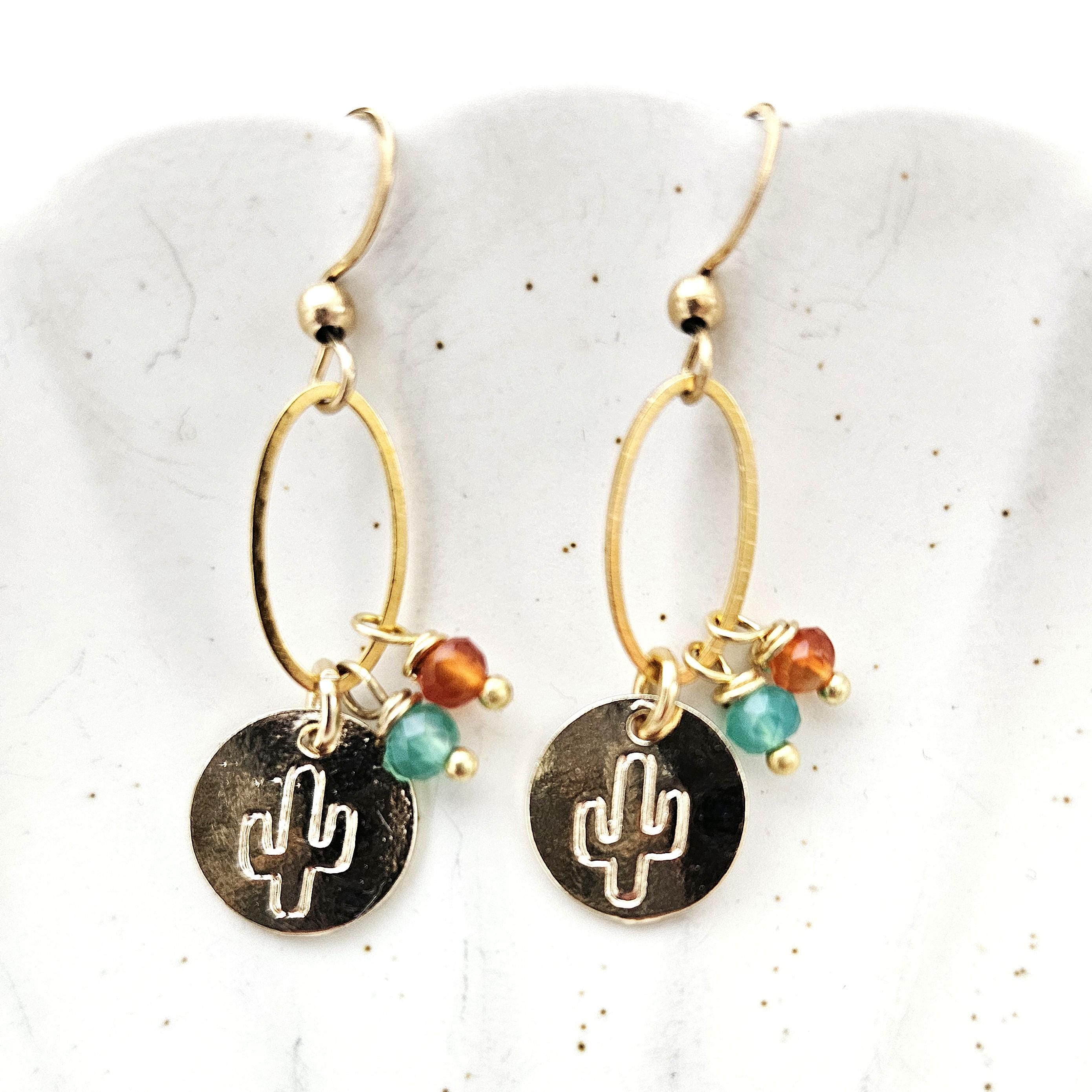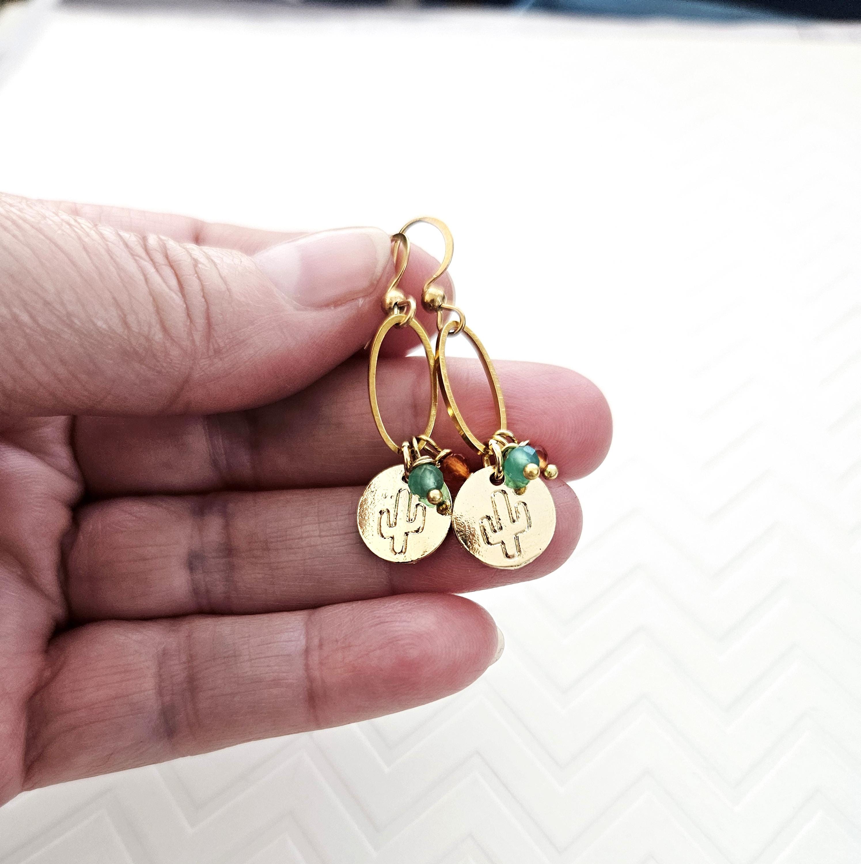 ~ đľ ~ Adorable Saguaro Cactus Earrings in Gold~ đľ ~