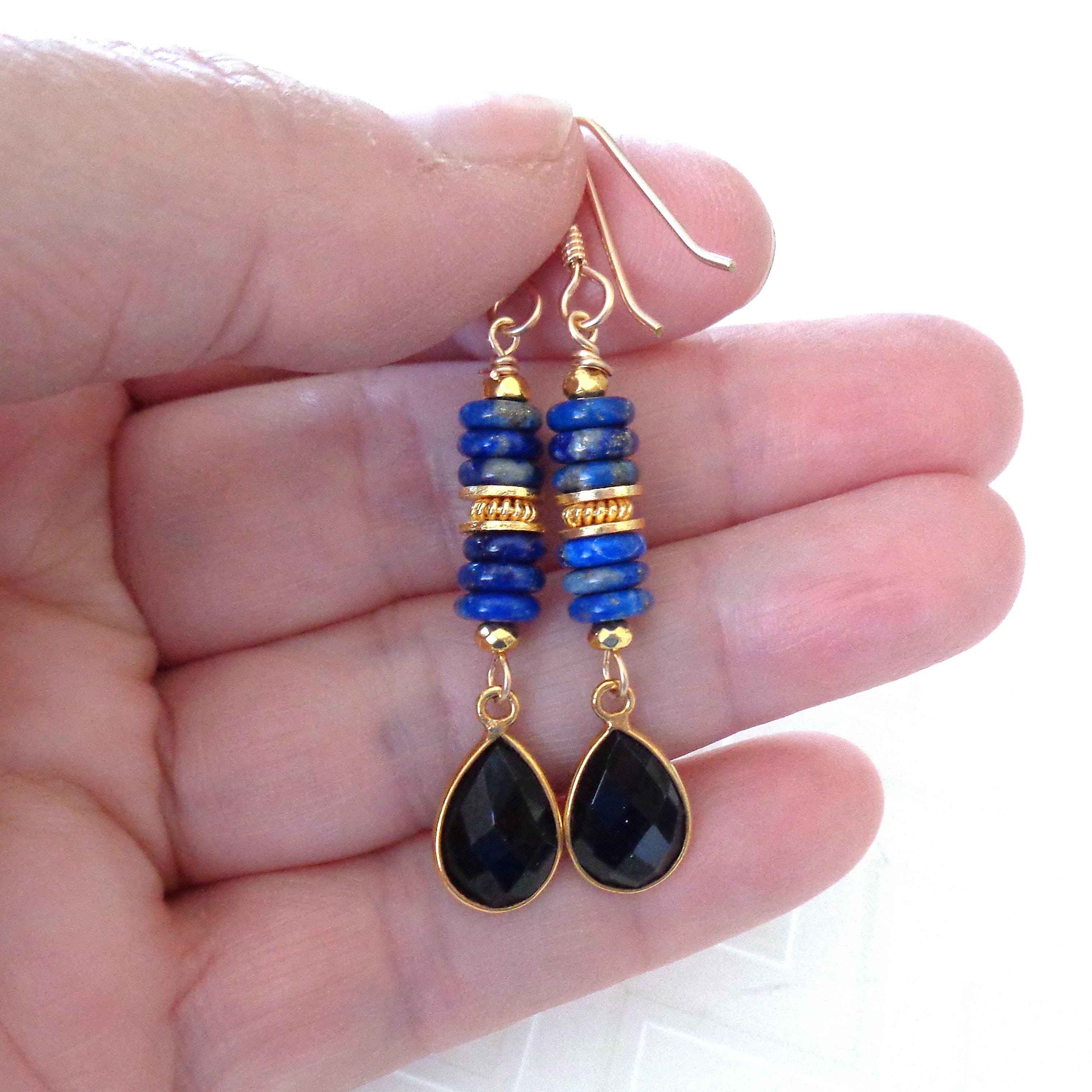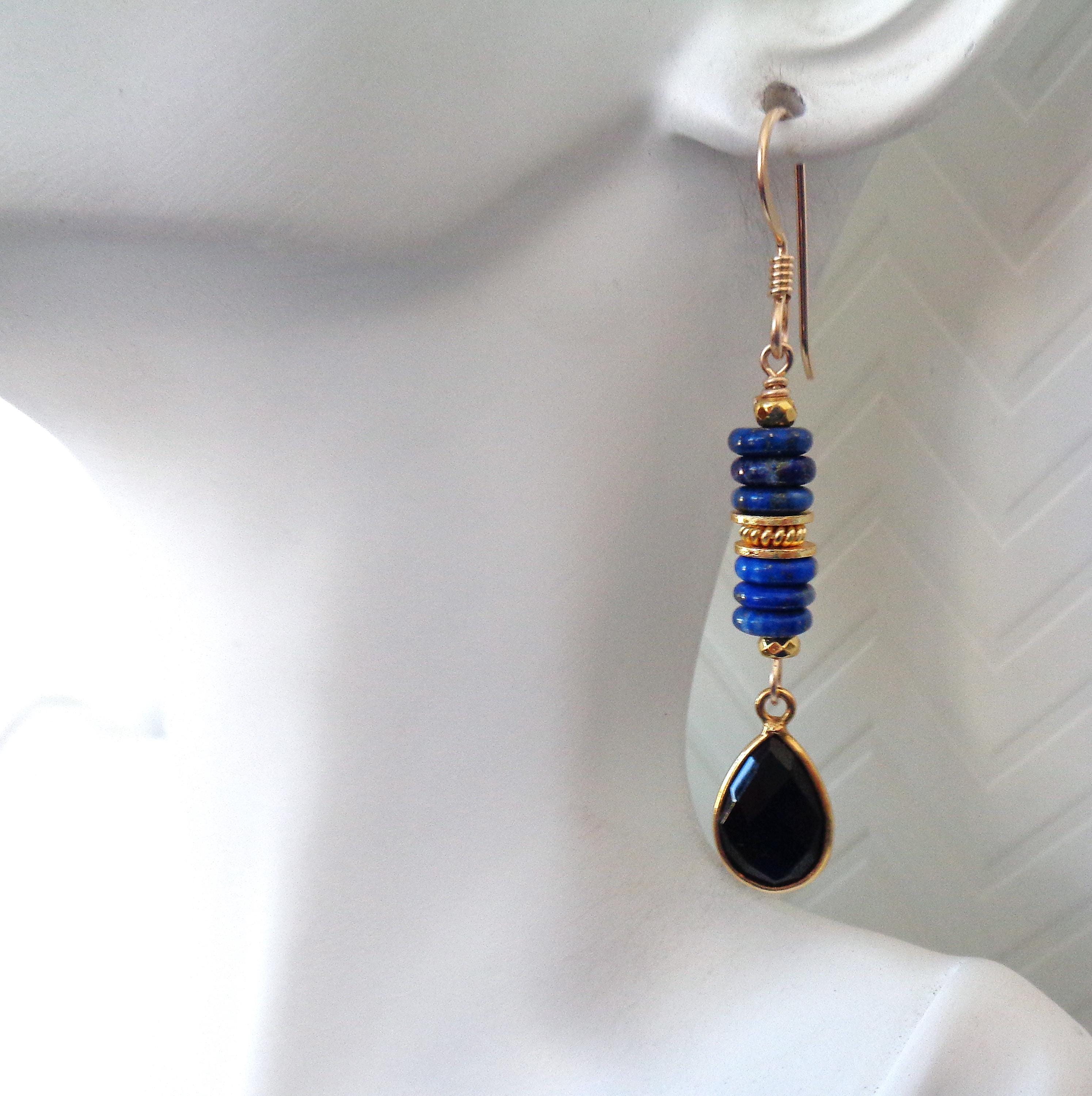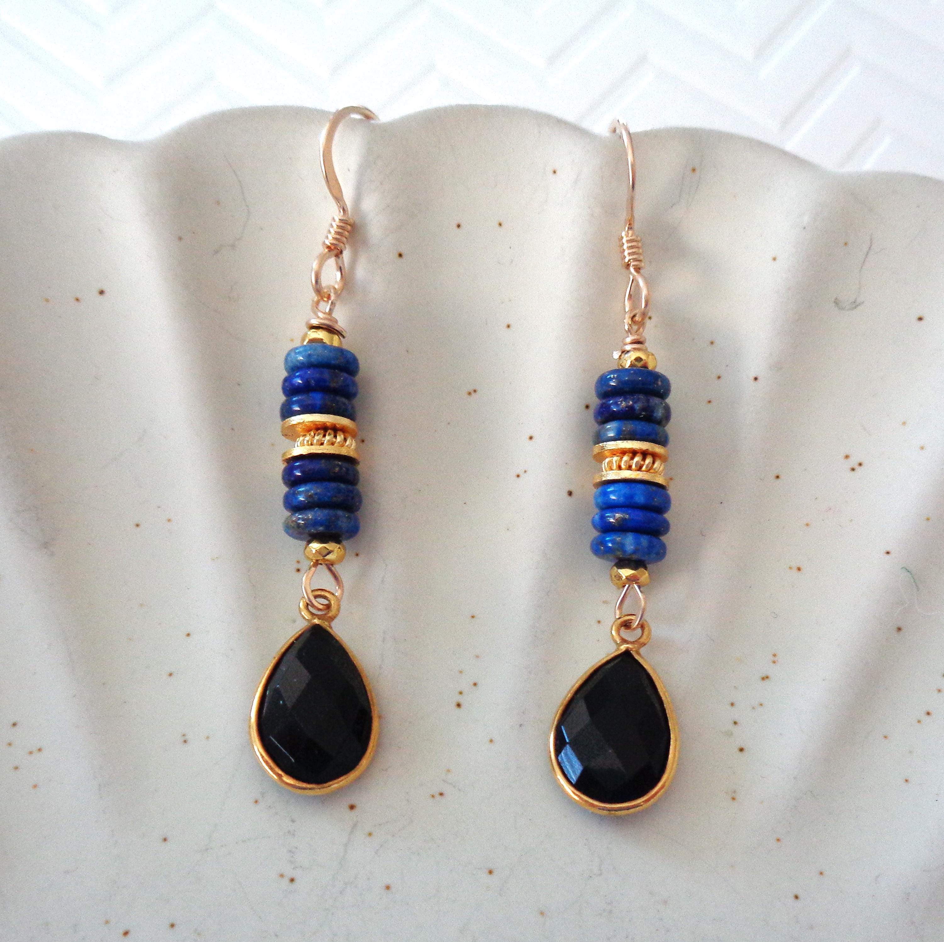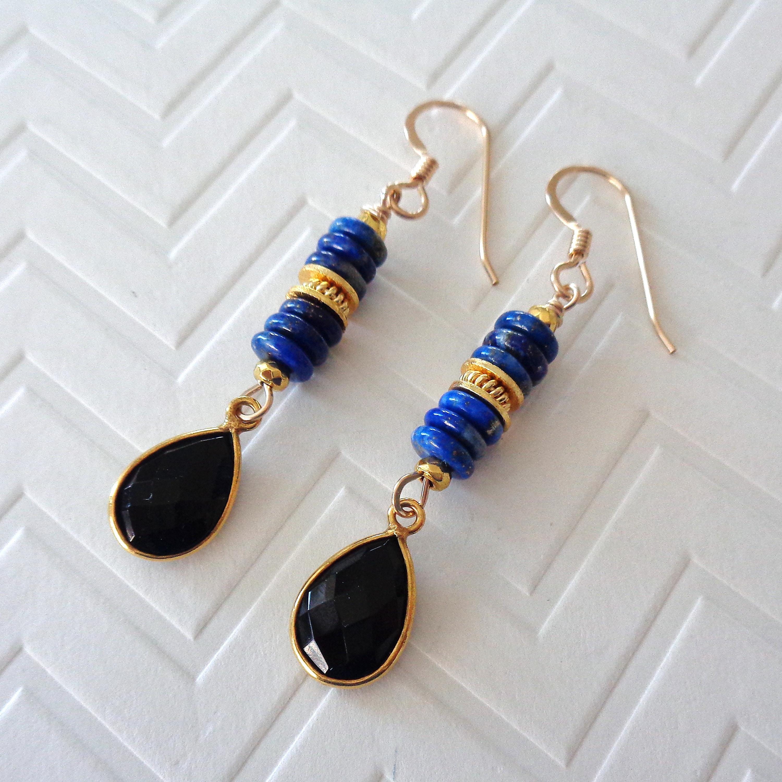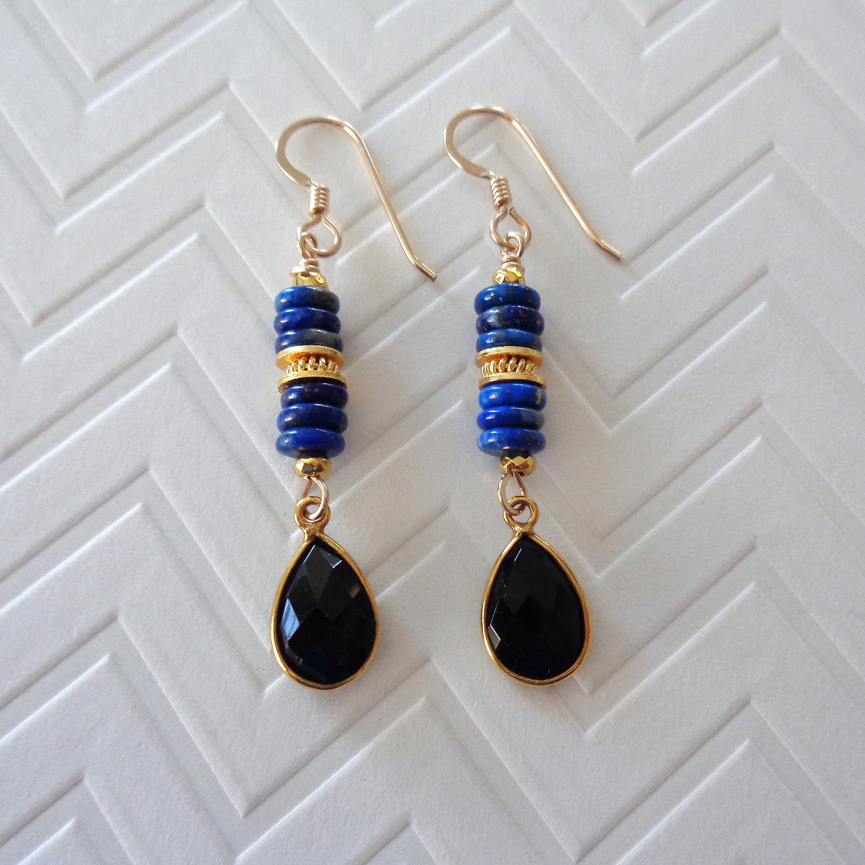• * • Glam Black Onyx & Lapis Lazuli Stack Earrings • * •