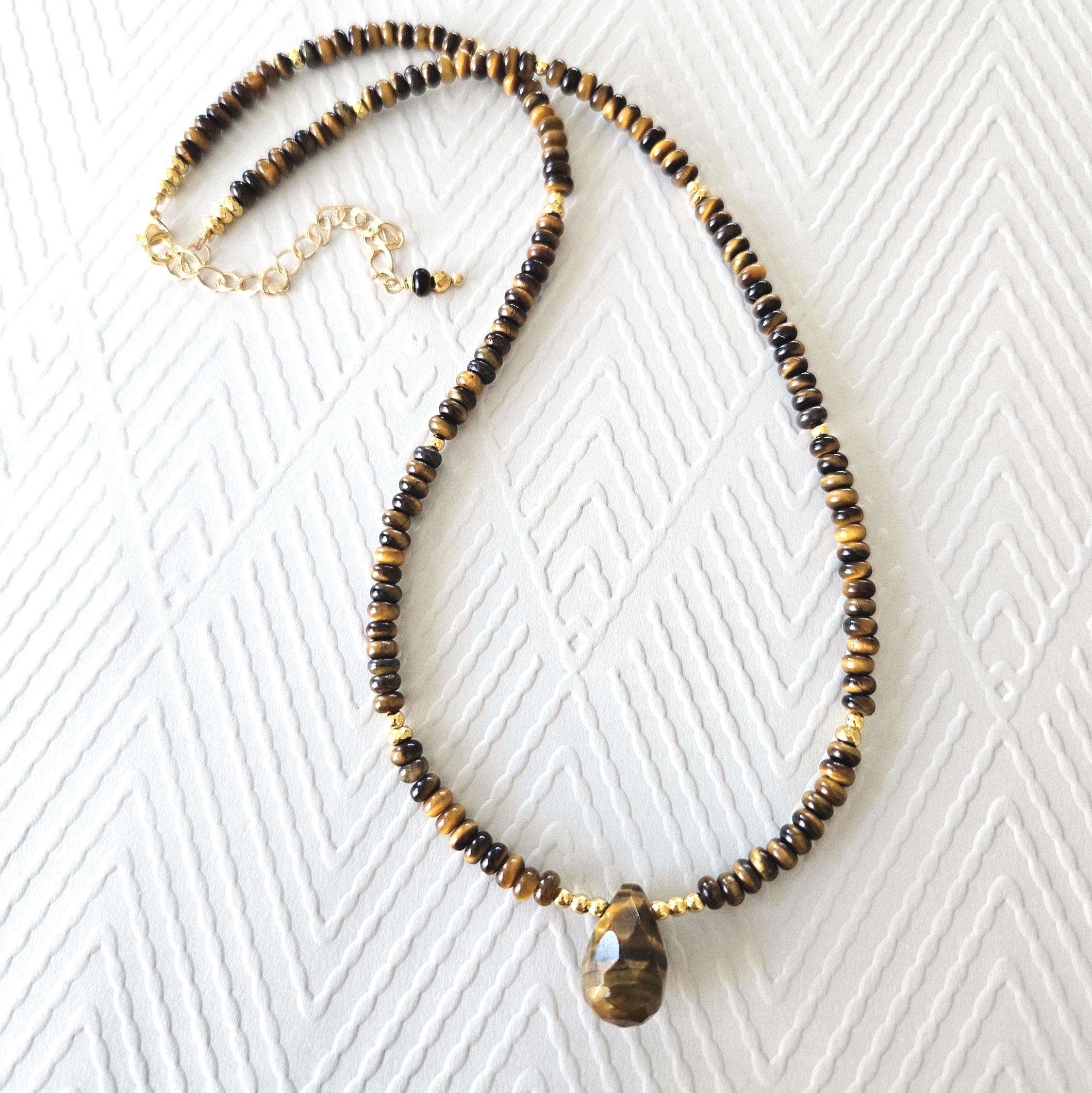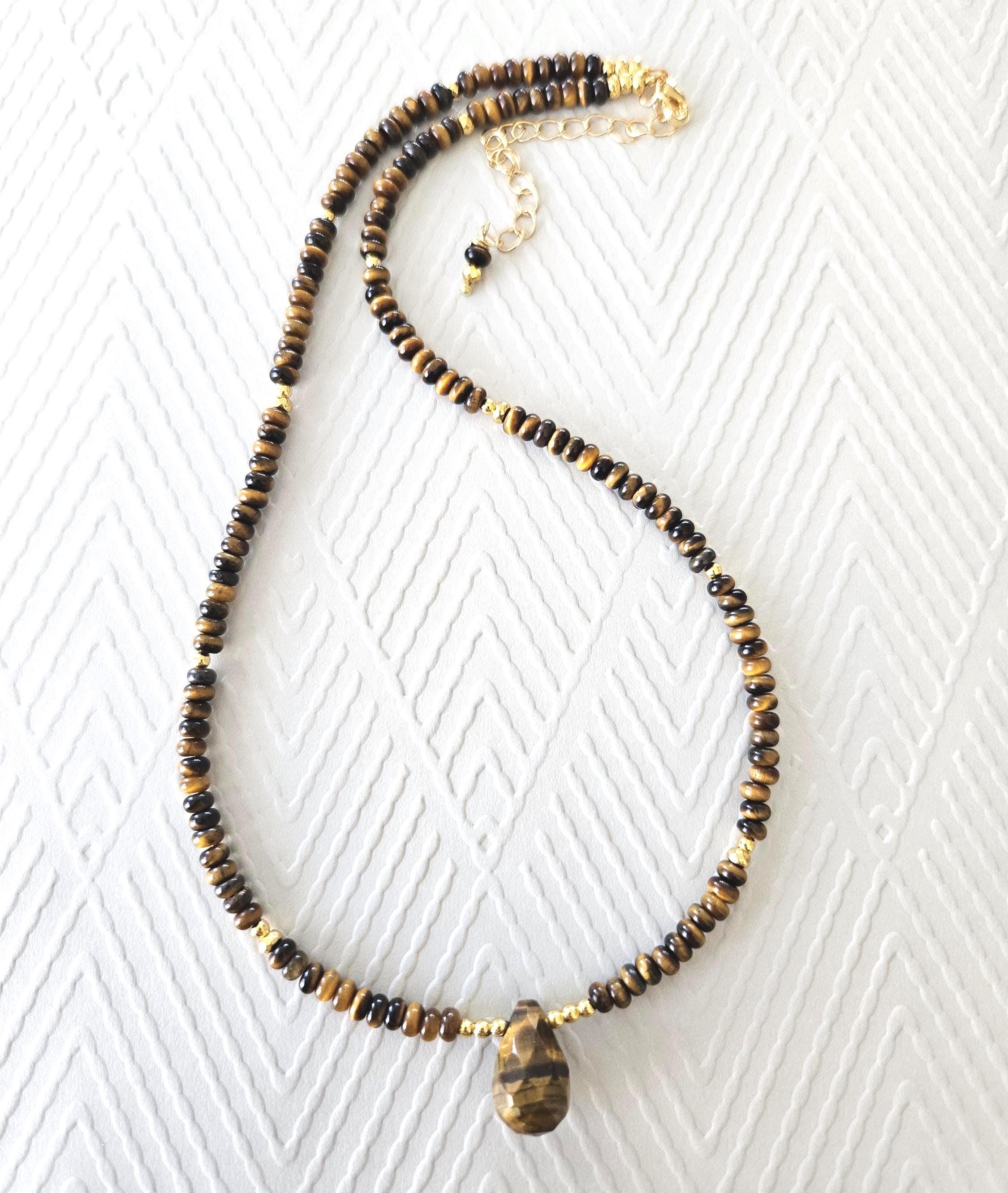 • 🐯 Tiger's Eye Beaded Pendant Necklace 🧡•
