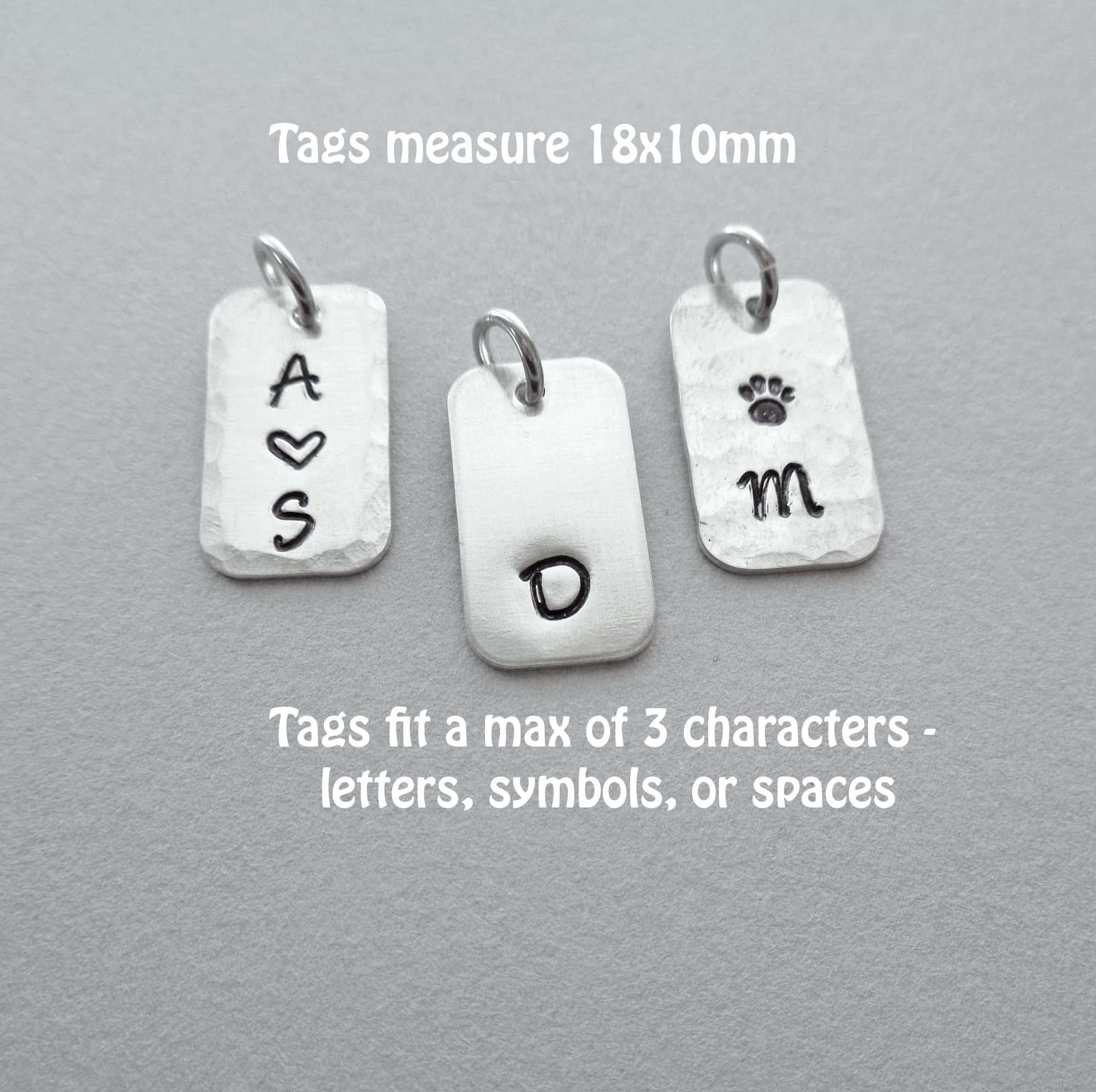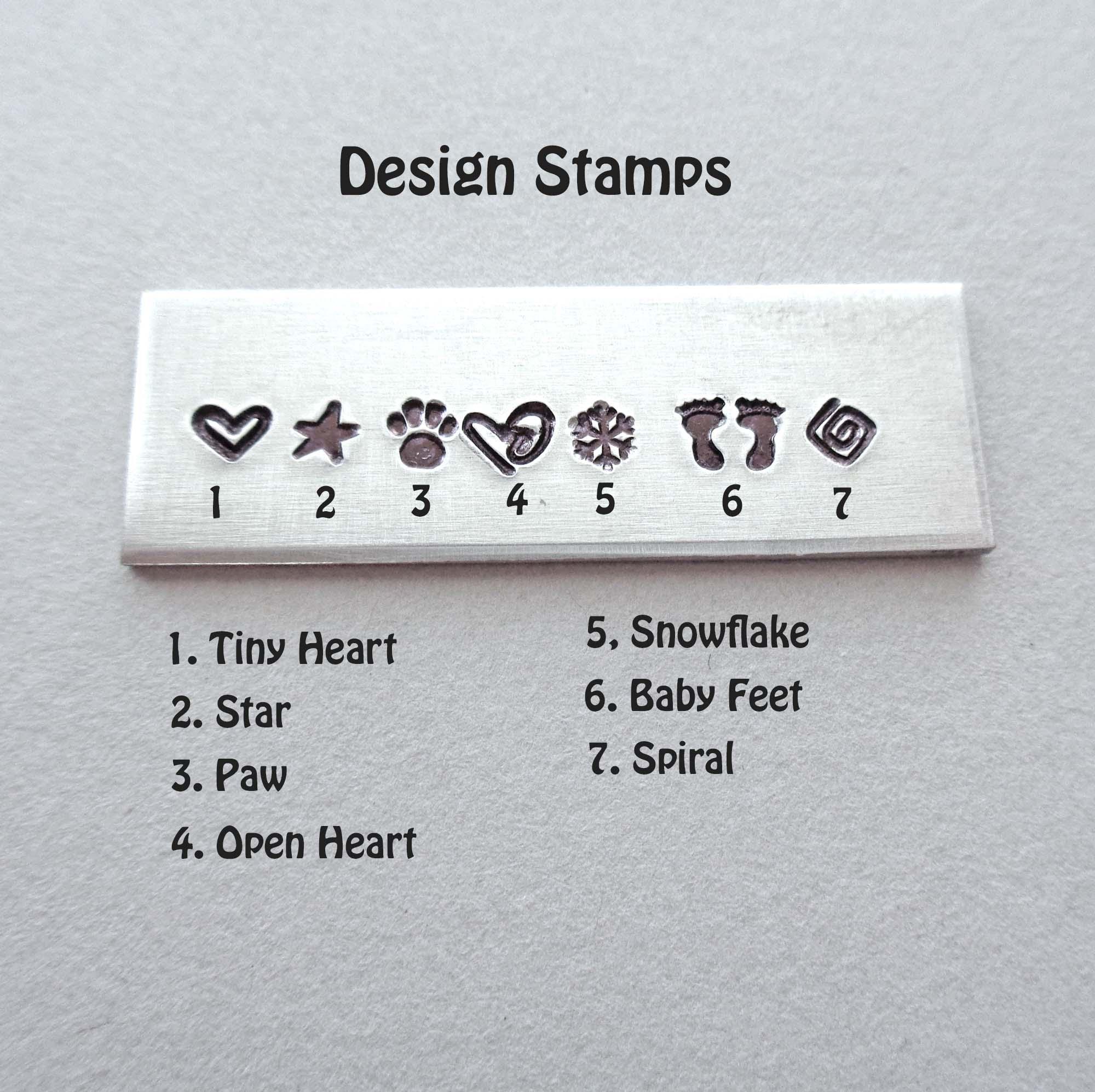 I cannot stamp on both sides of a disc/bar/square because the impression of each letter/number/symbol will ruin the stamping on the other side. Each letter/number/symbol is stamped by using steel stamps struck by a hammer making an impression in the metal, similar to embossing.