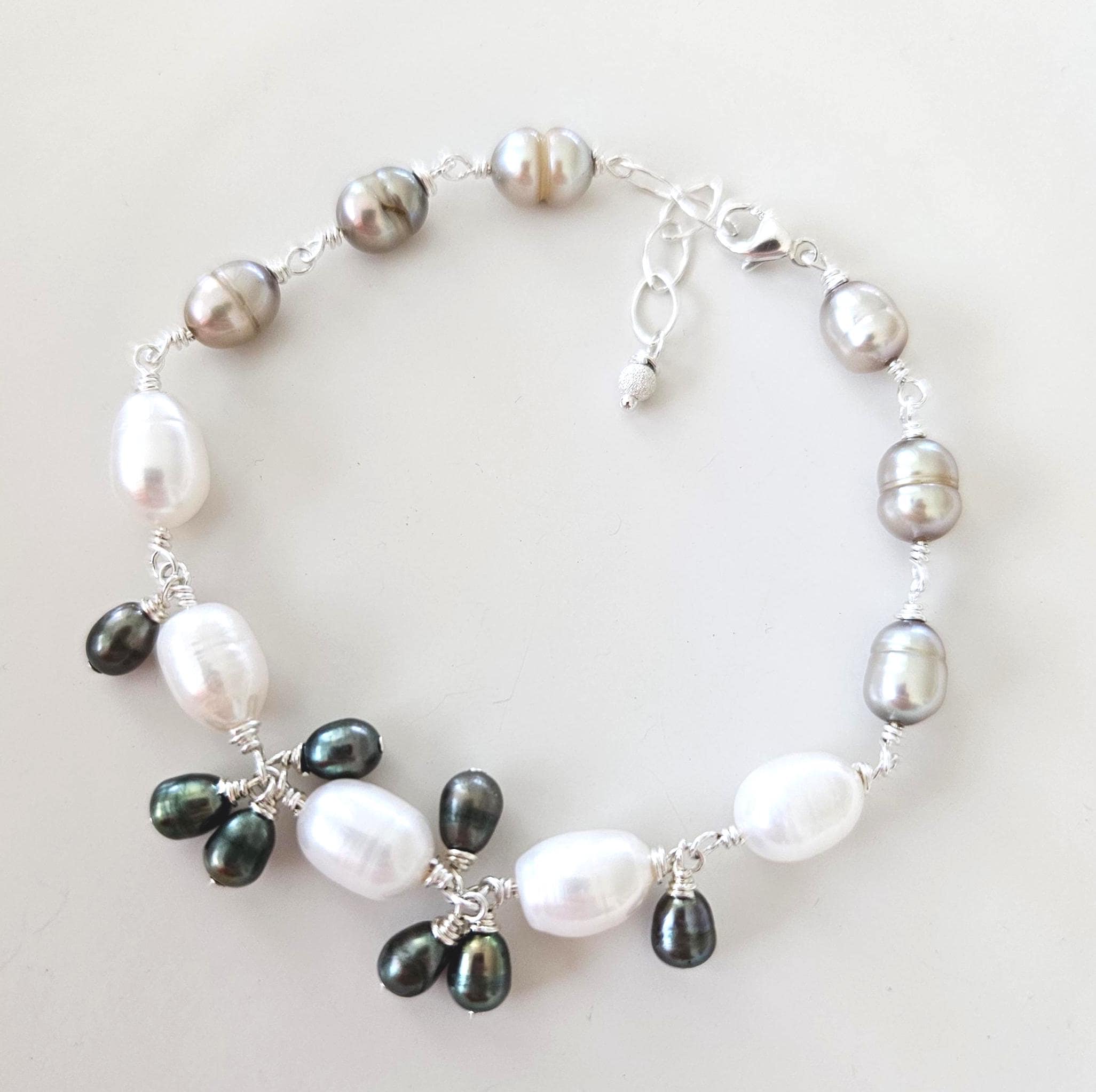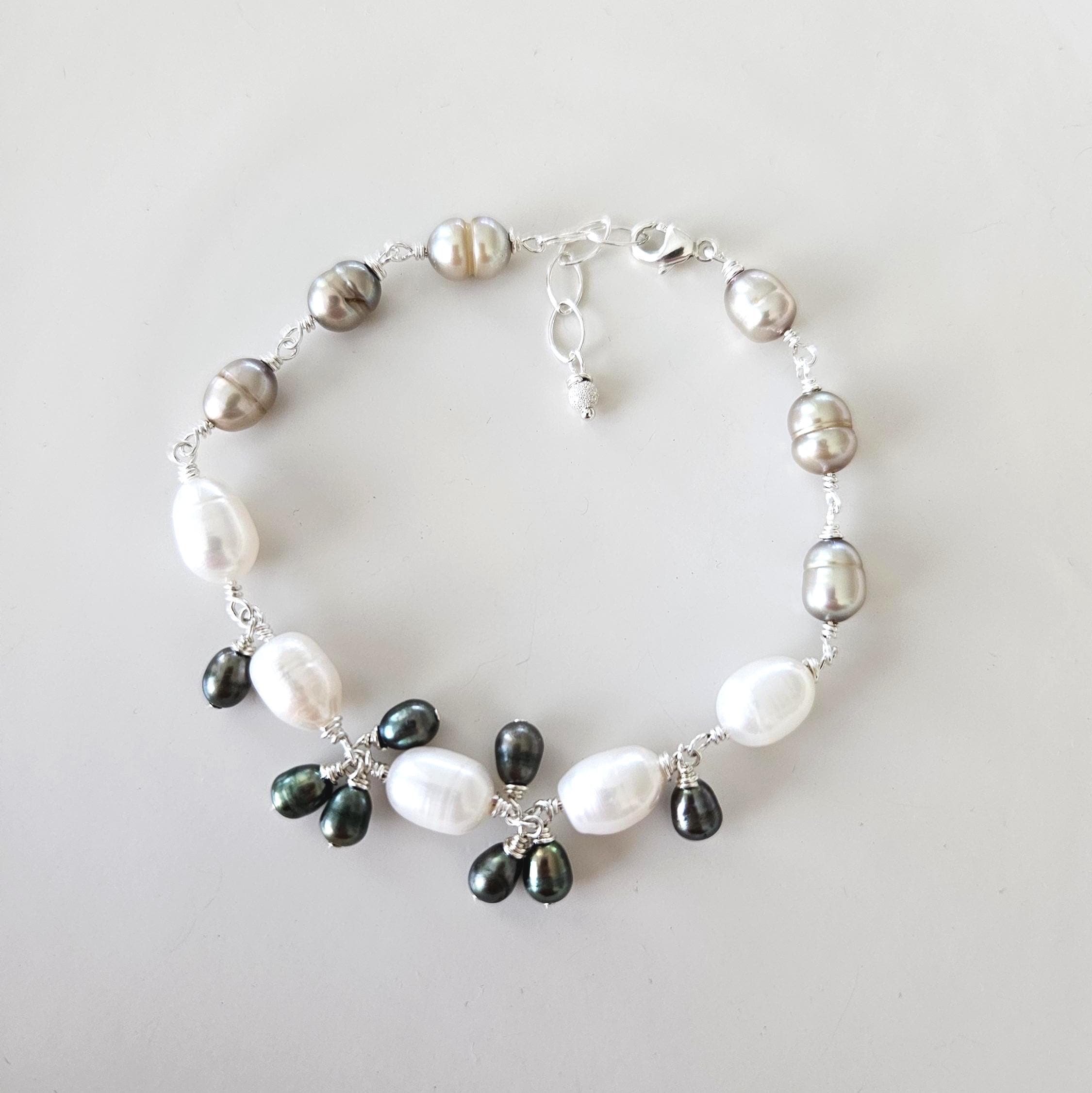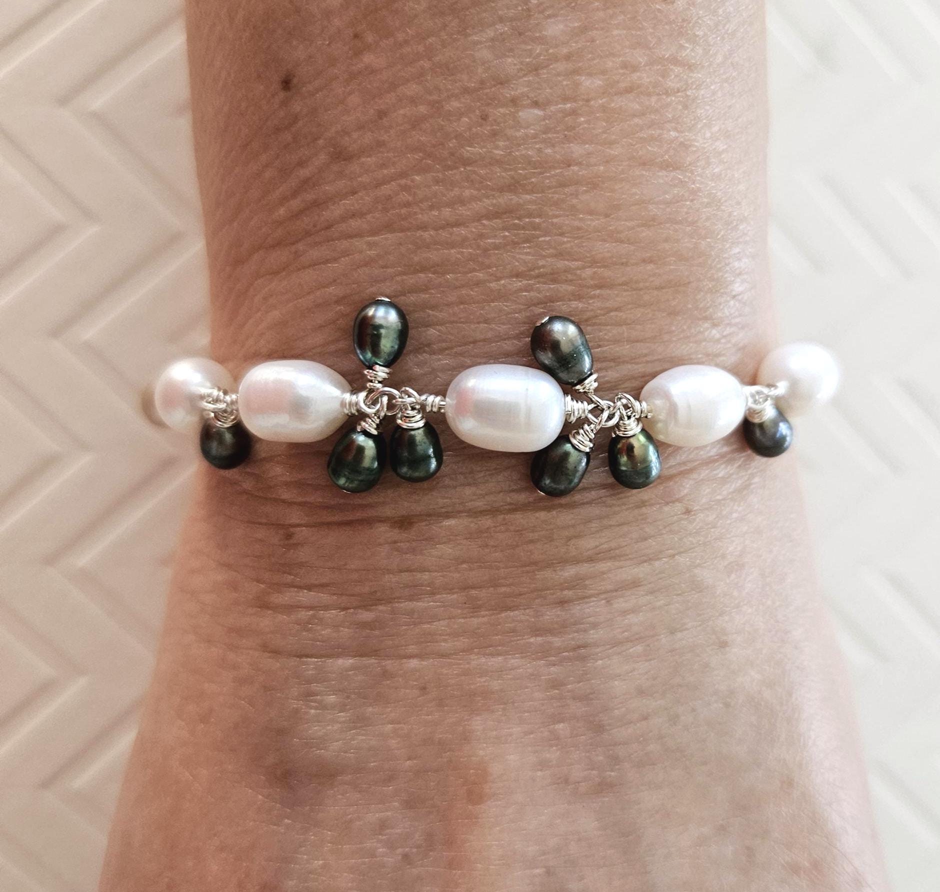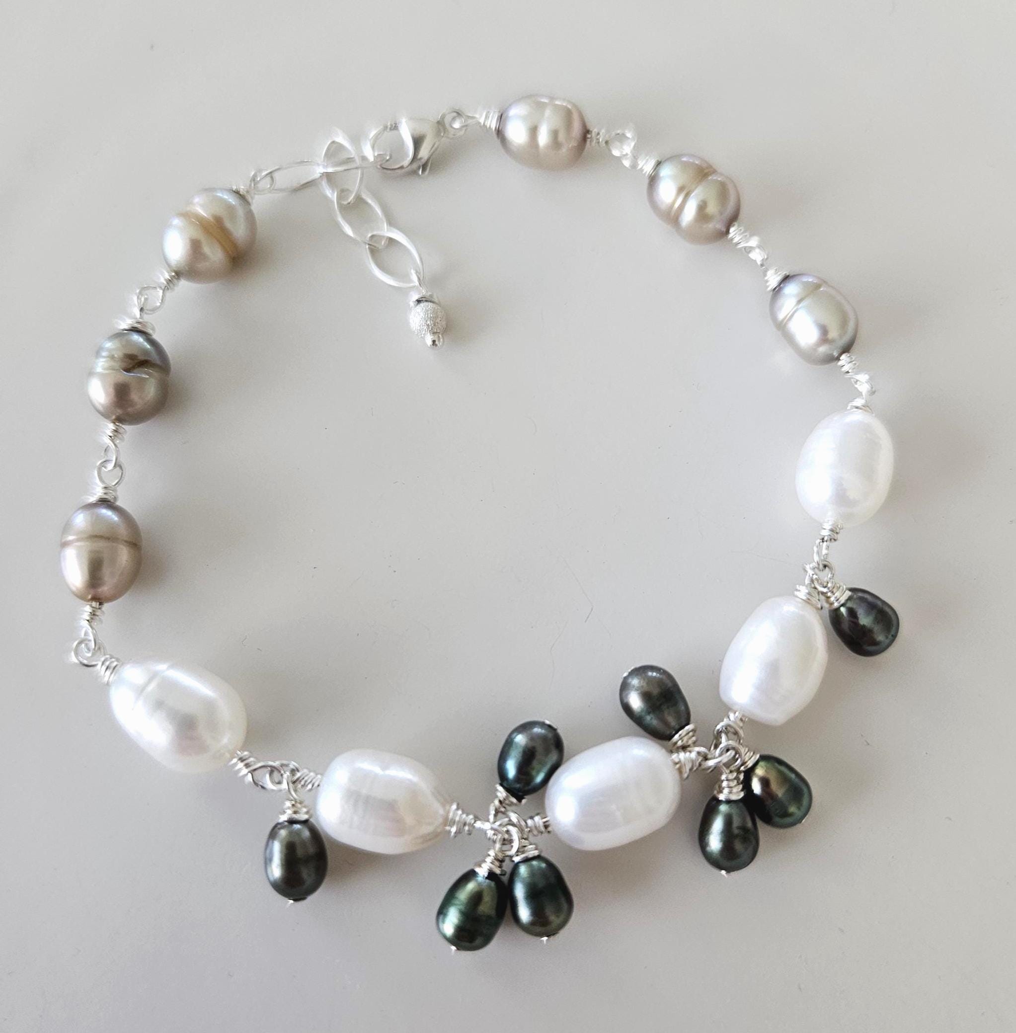 ~ ♦ ~ Wire-wrapped Rice Pearl Bracelet in Sterling Silver ~ ♦ ~