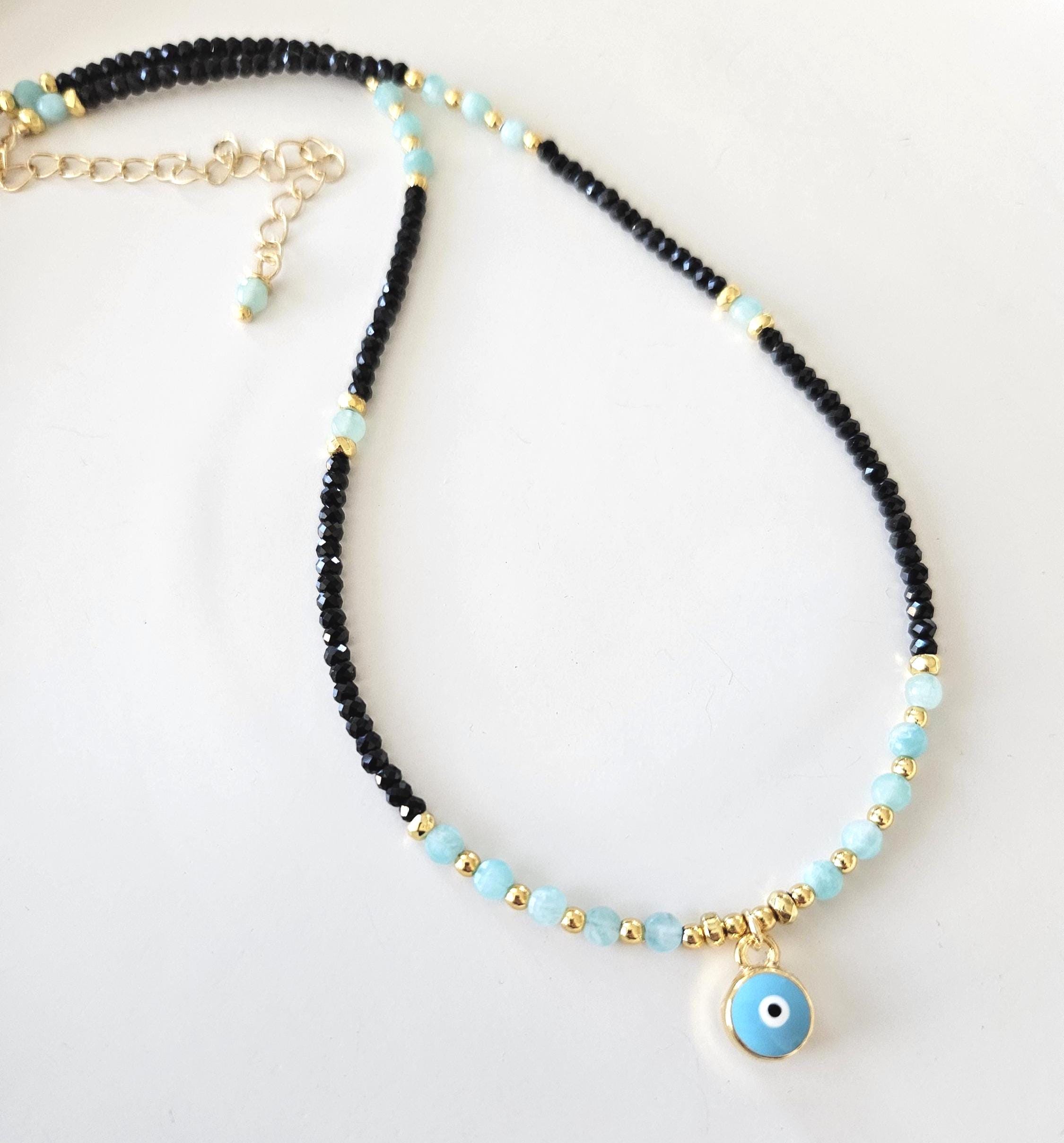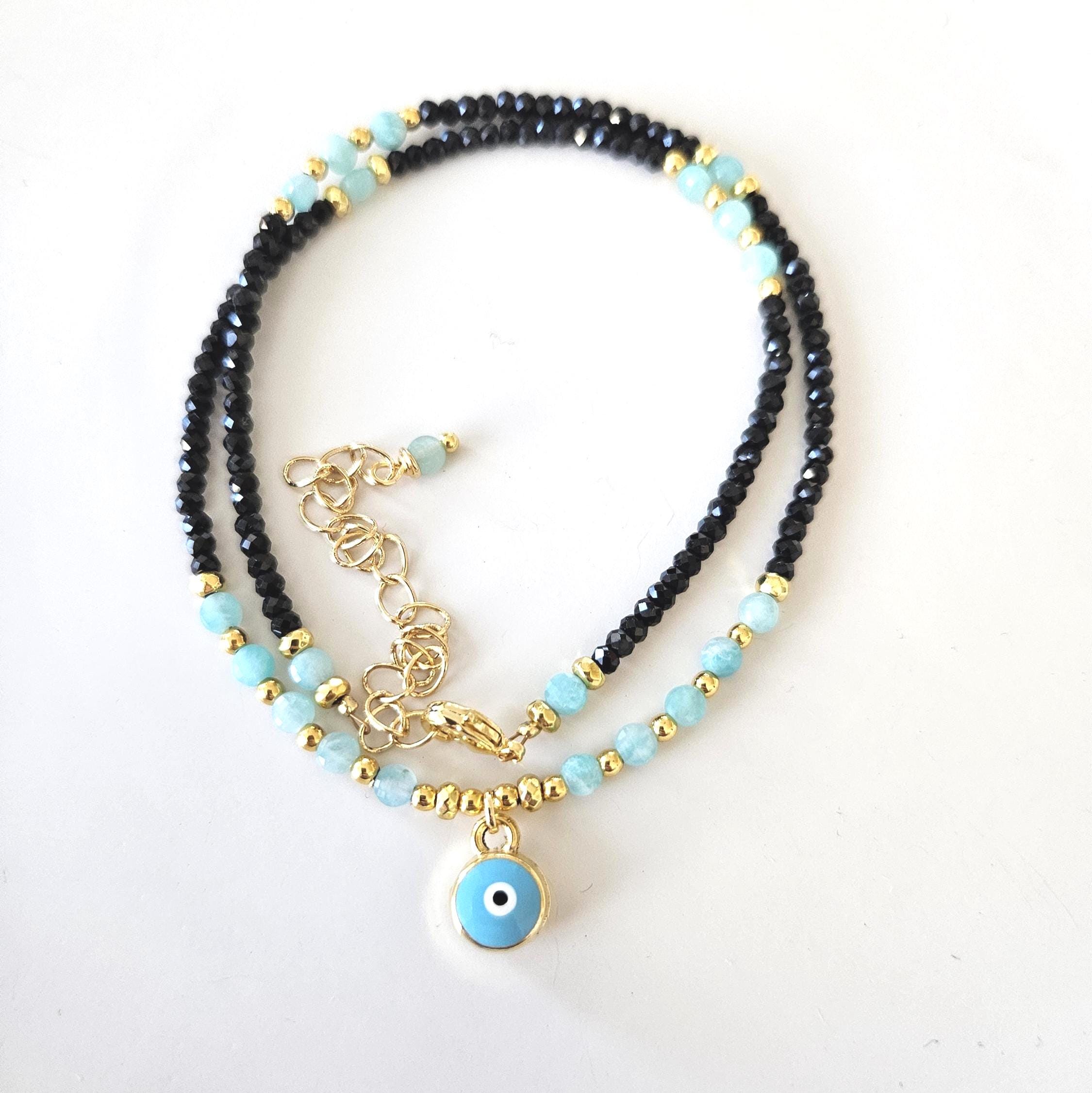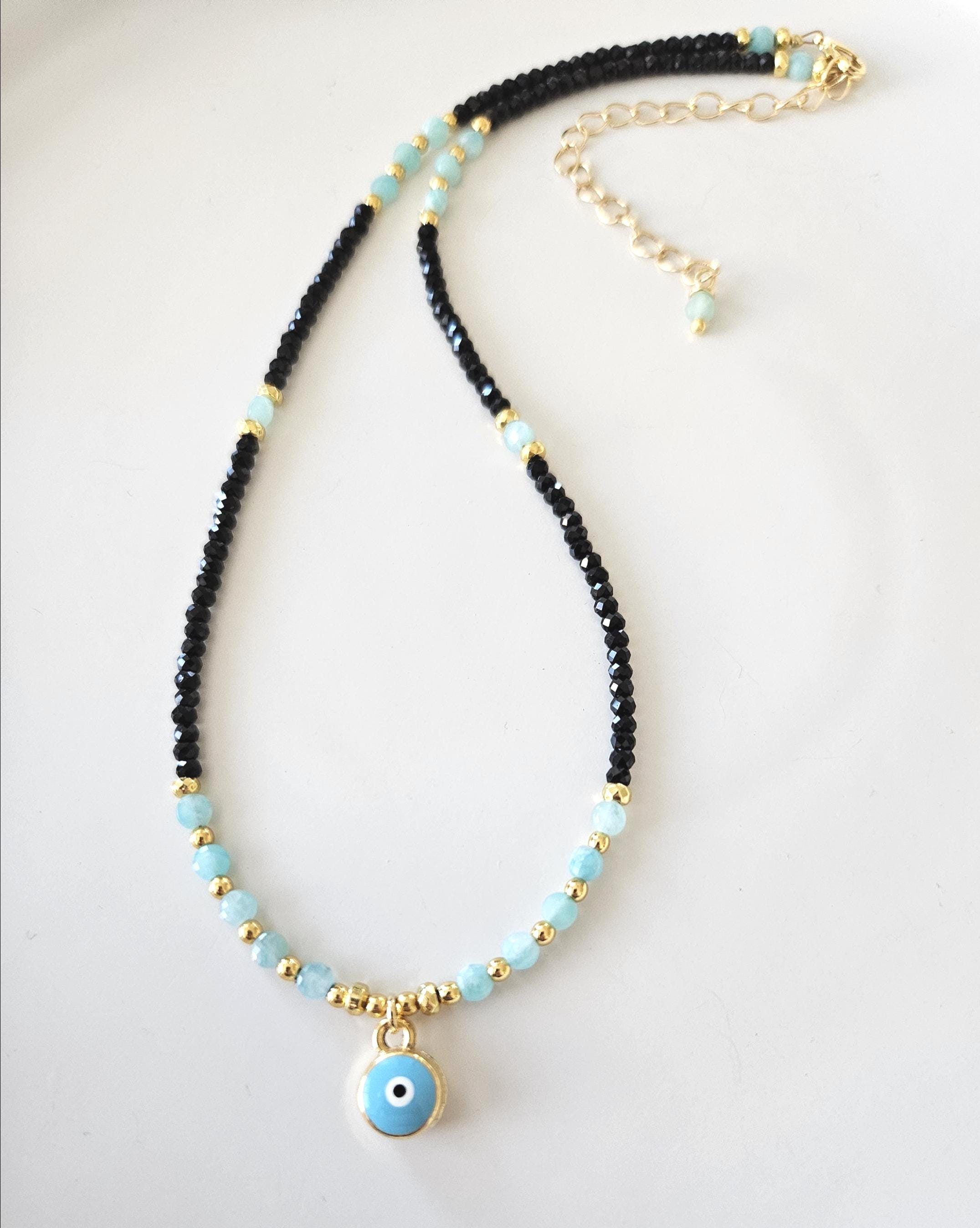 ~ ♦ ~ Amazonite & Black Tourmaline Evil Eye Choker ~ ♦ ~