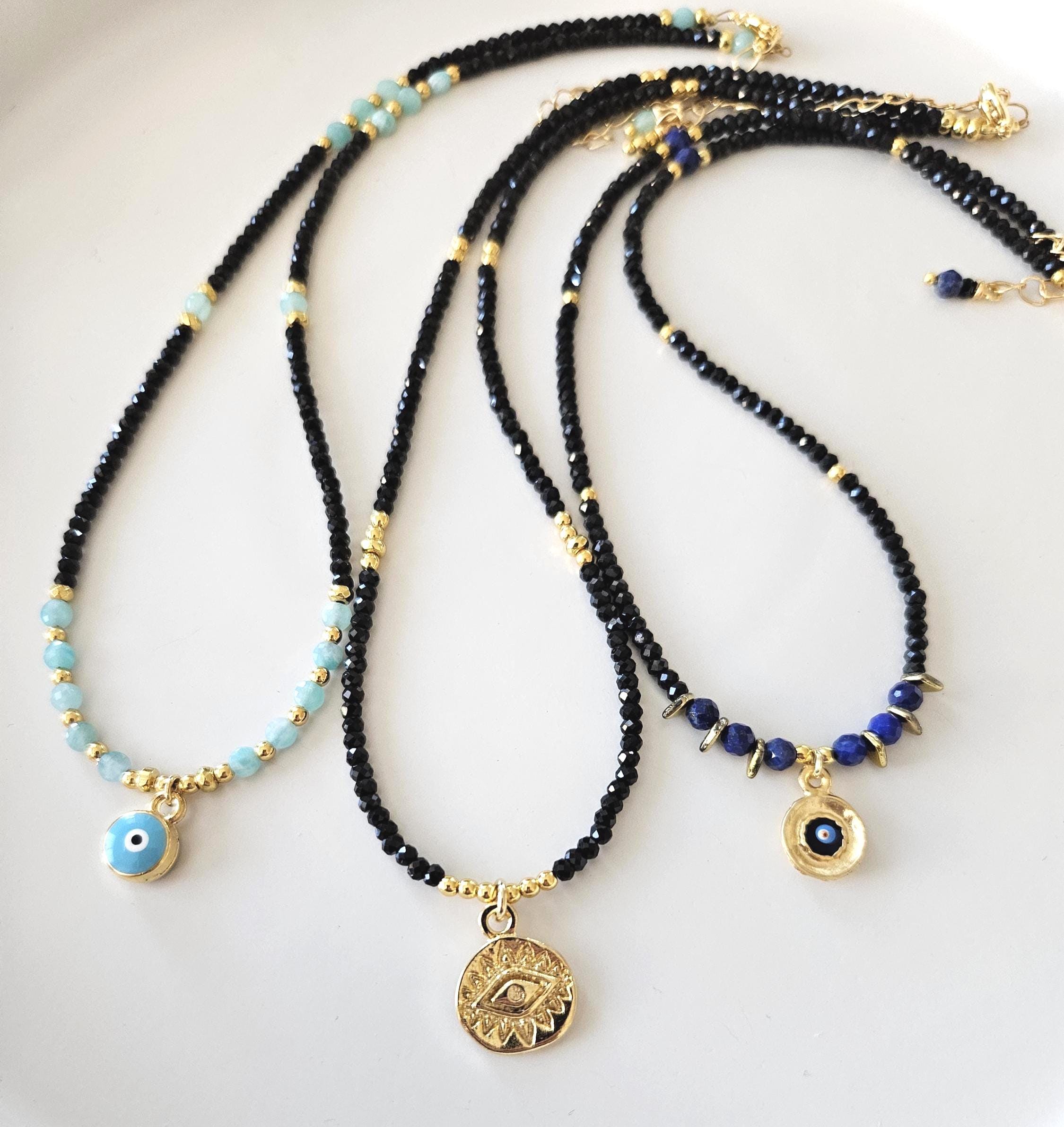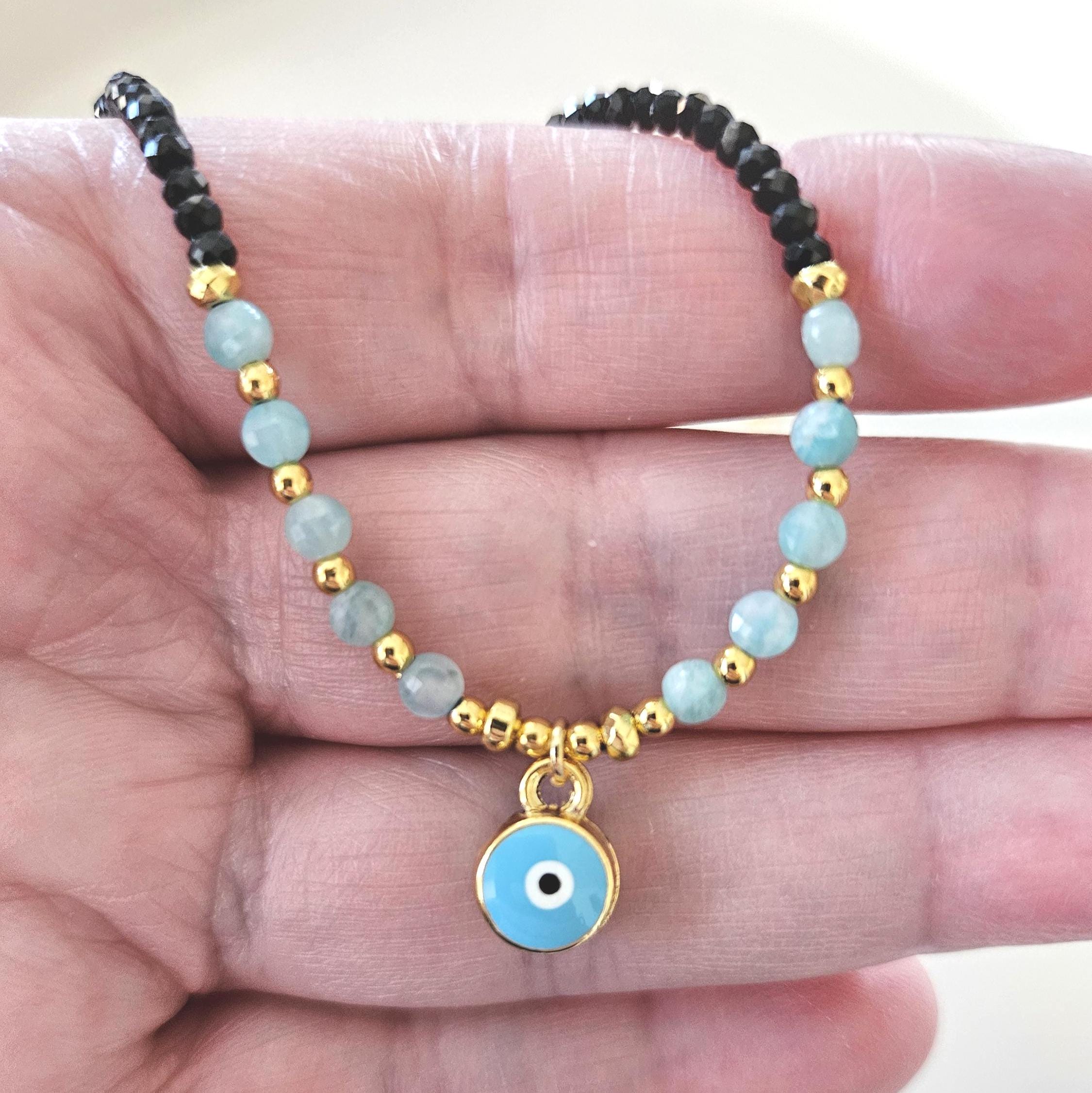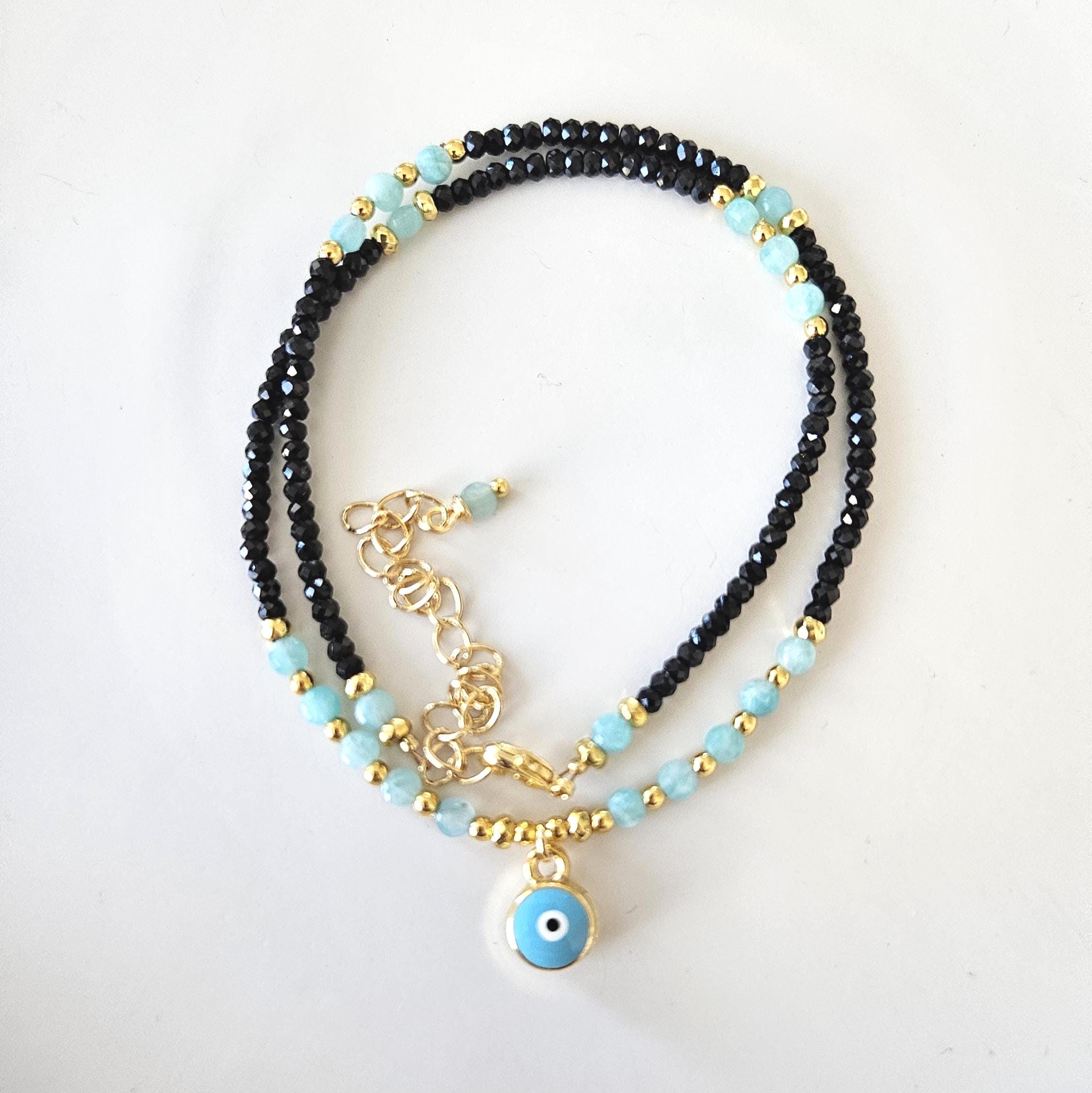 ~ ♦ ~ Amazonite & Black Tourmaline Evil Eye Choker ~ ♦ ~