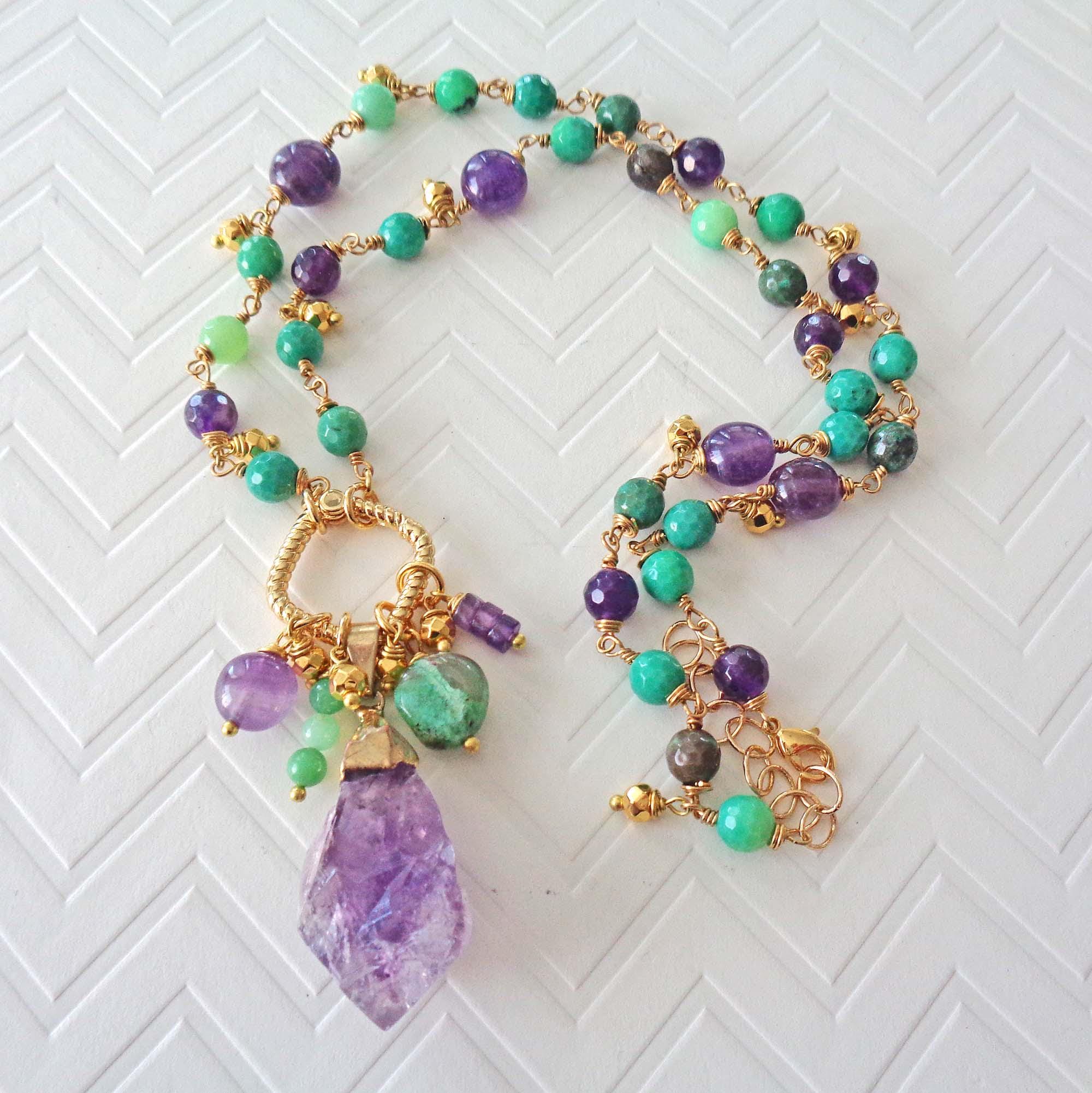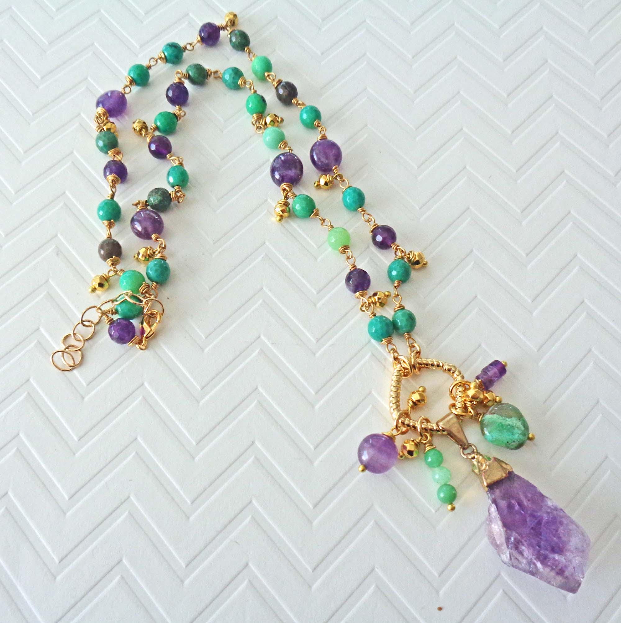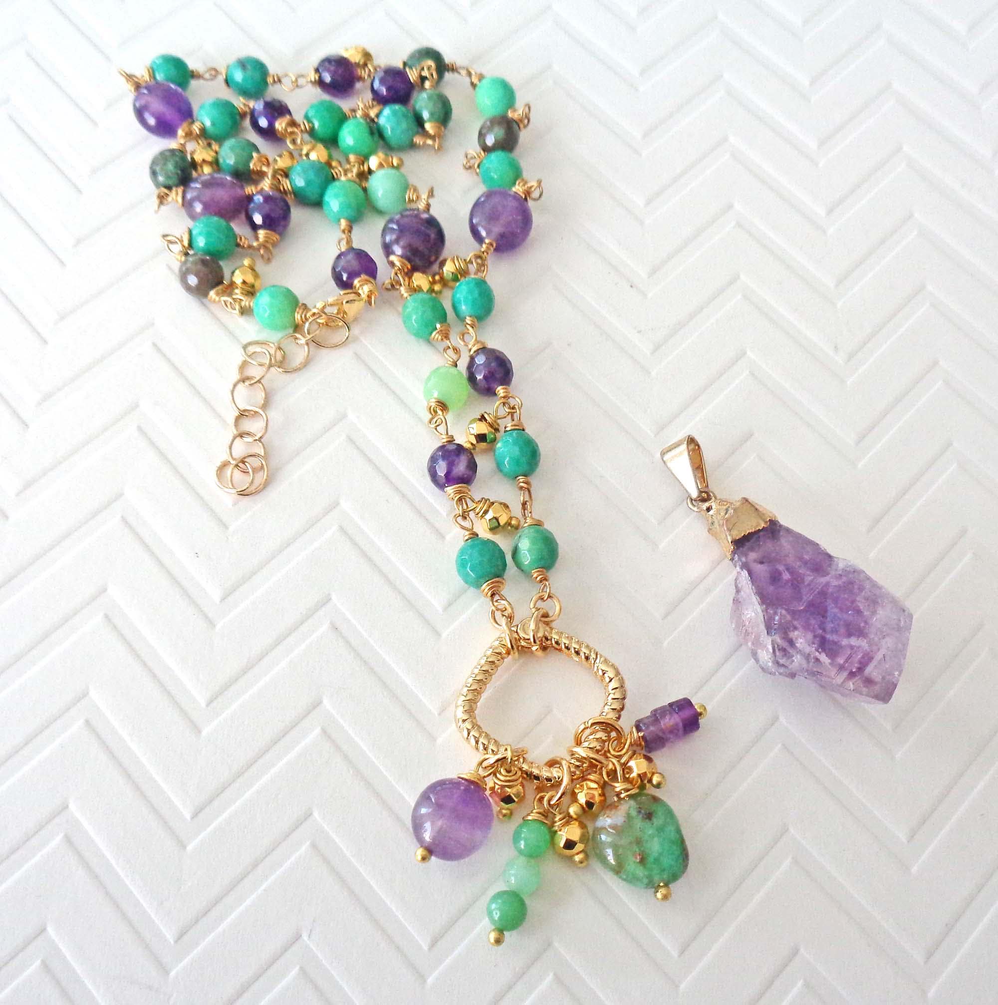 ~ ♦ ~ Beautiful and Colorful Raw Amethyst & Australian Green Chrysoprase Necklace ~ ♦ ~