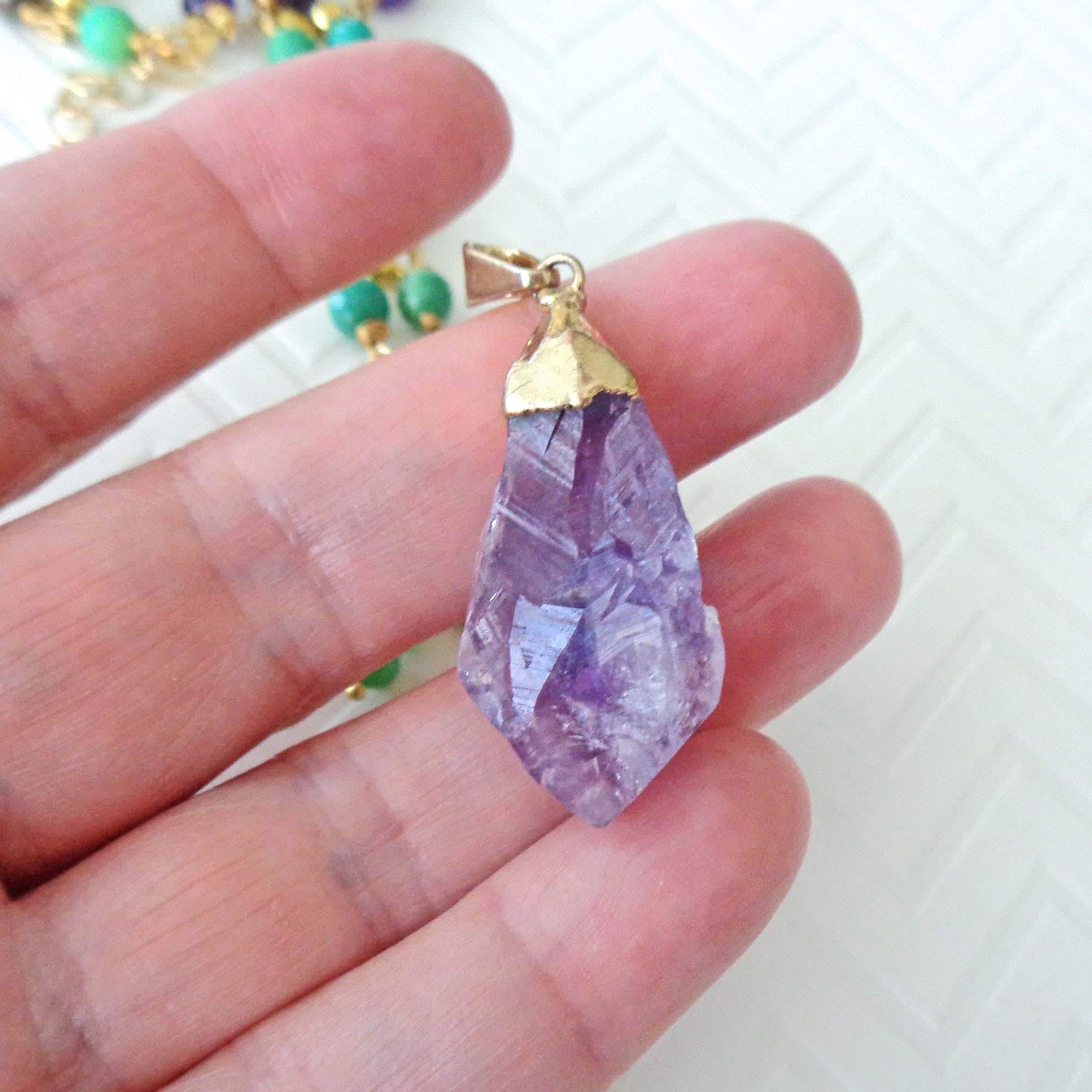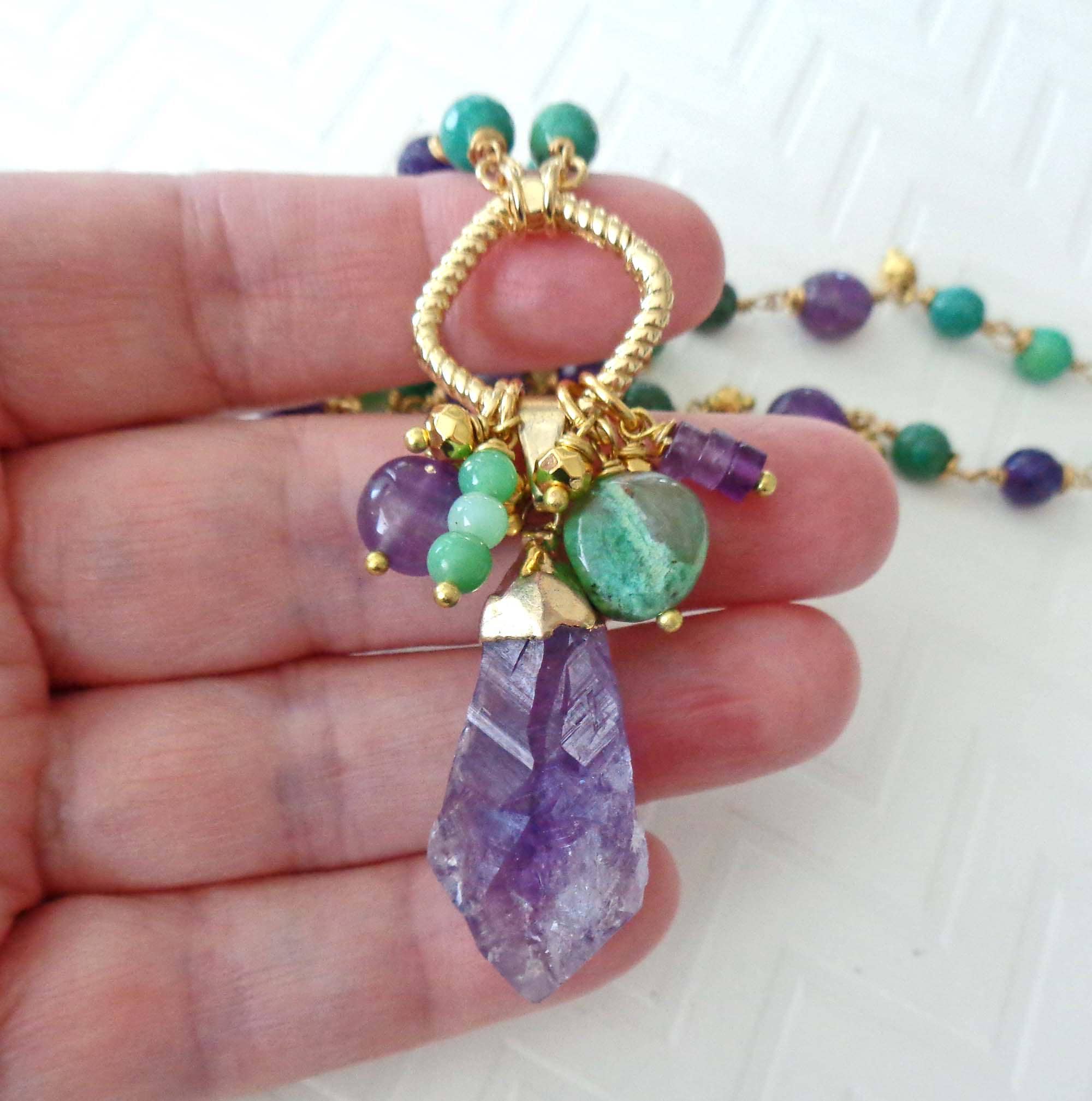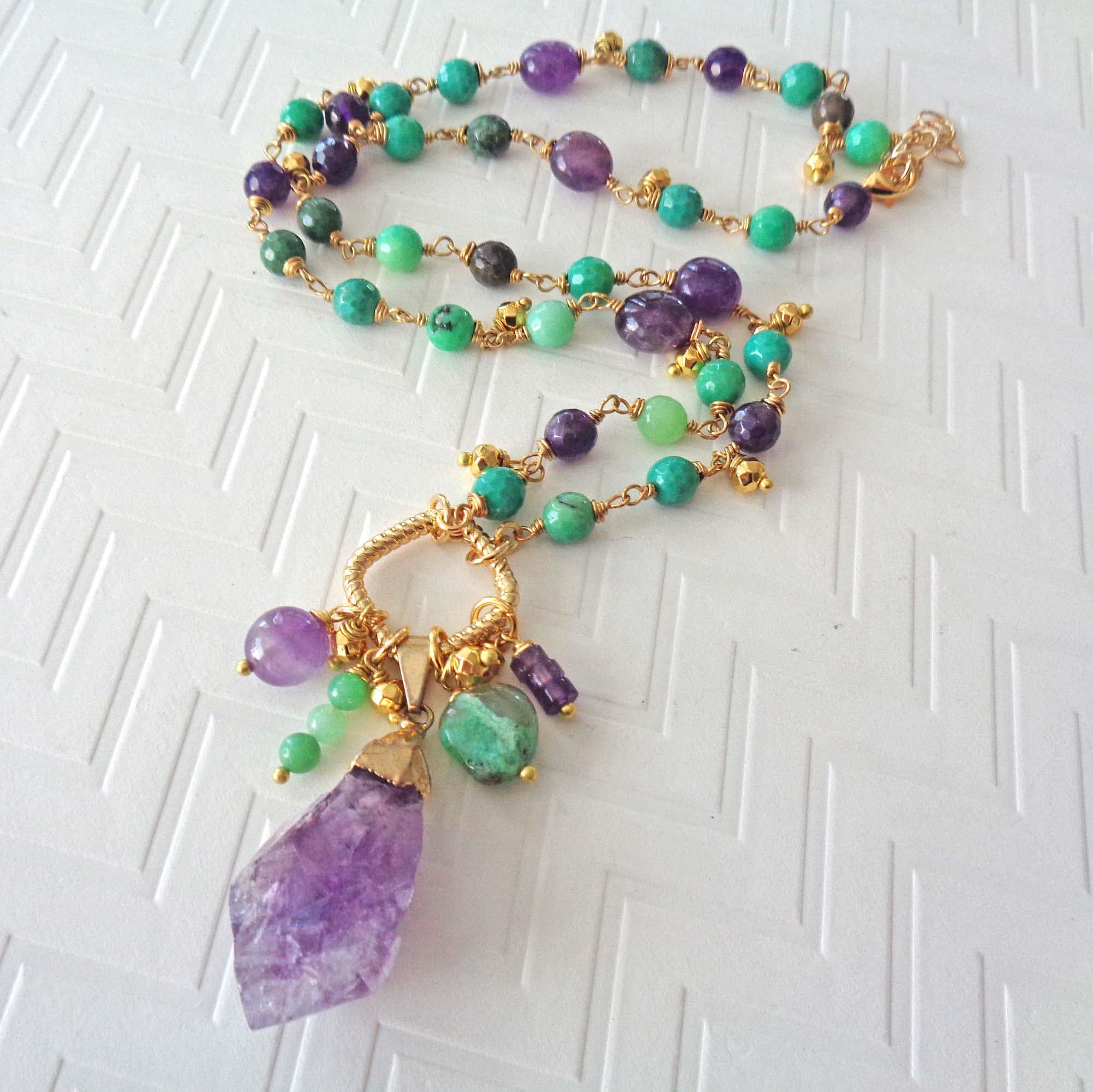 ~ ♦ ~ Beautiful and Colorful Raw Amethyst & Australian Green Chrysoprase Necklace ~ ♦ ~