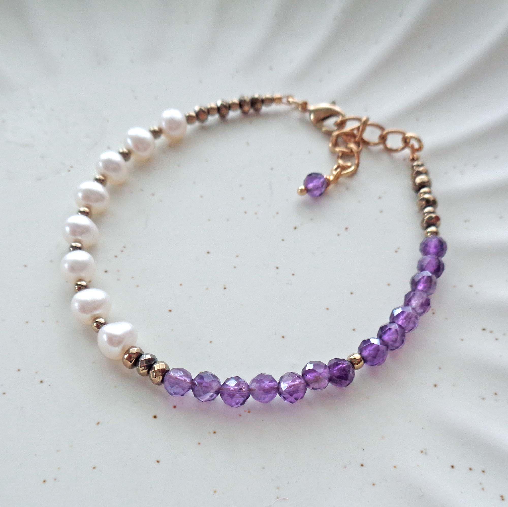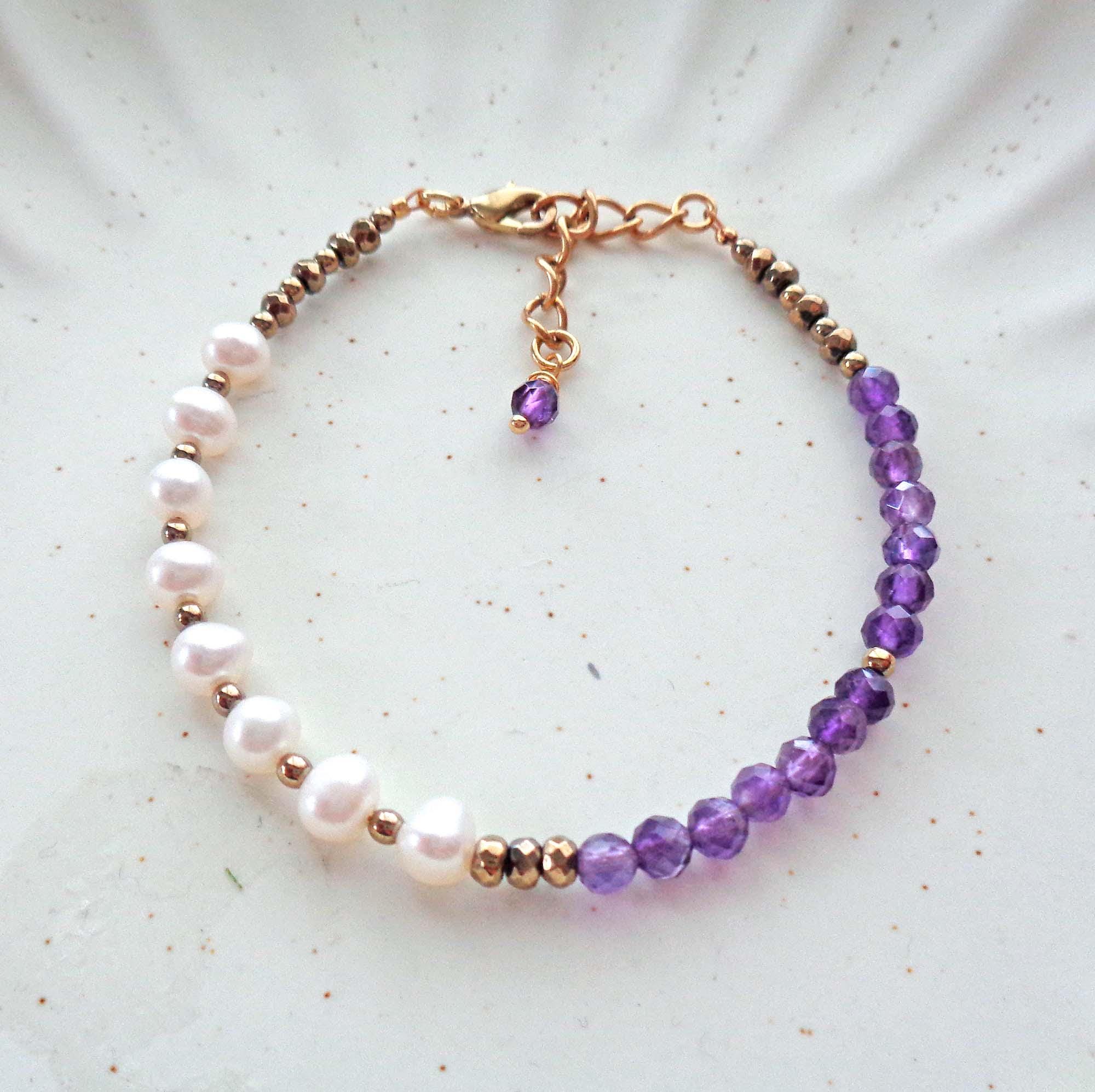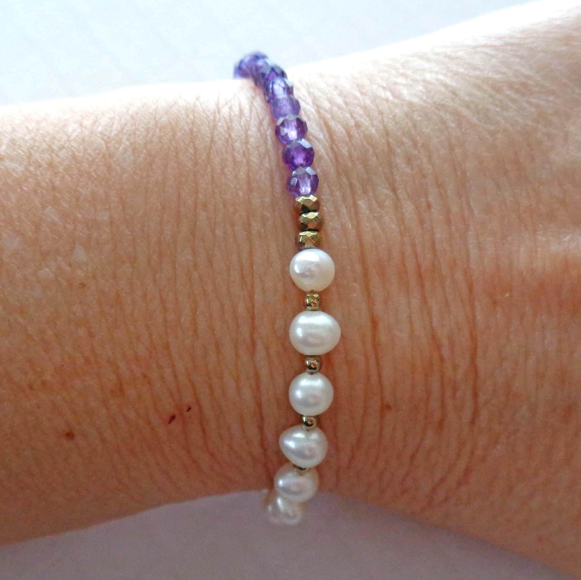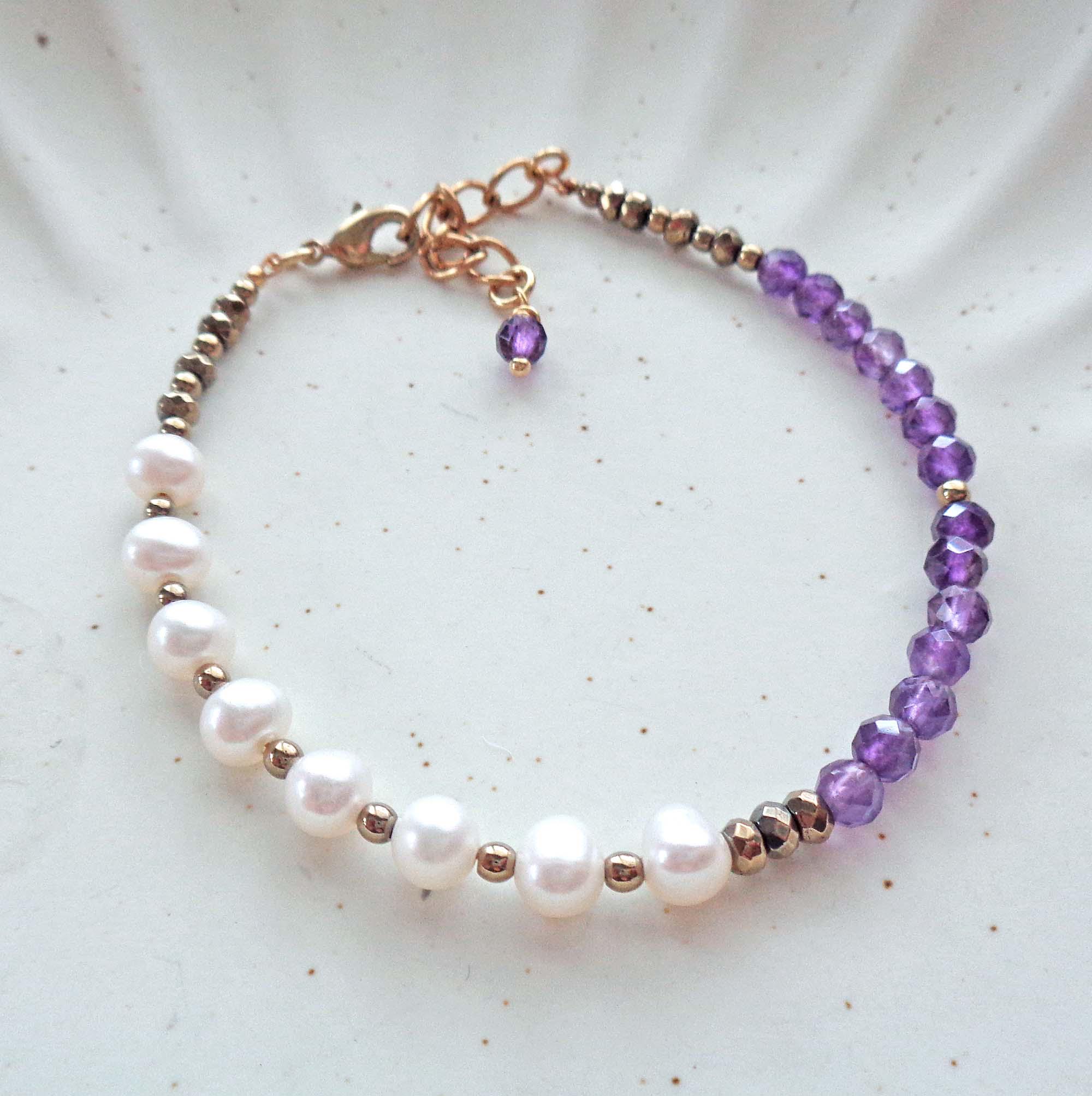 • * • Amethyst & Fresh Water Pearls Bracelet • * •