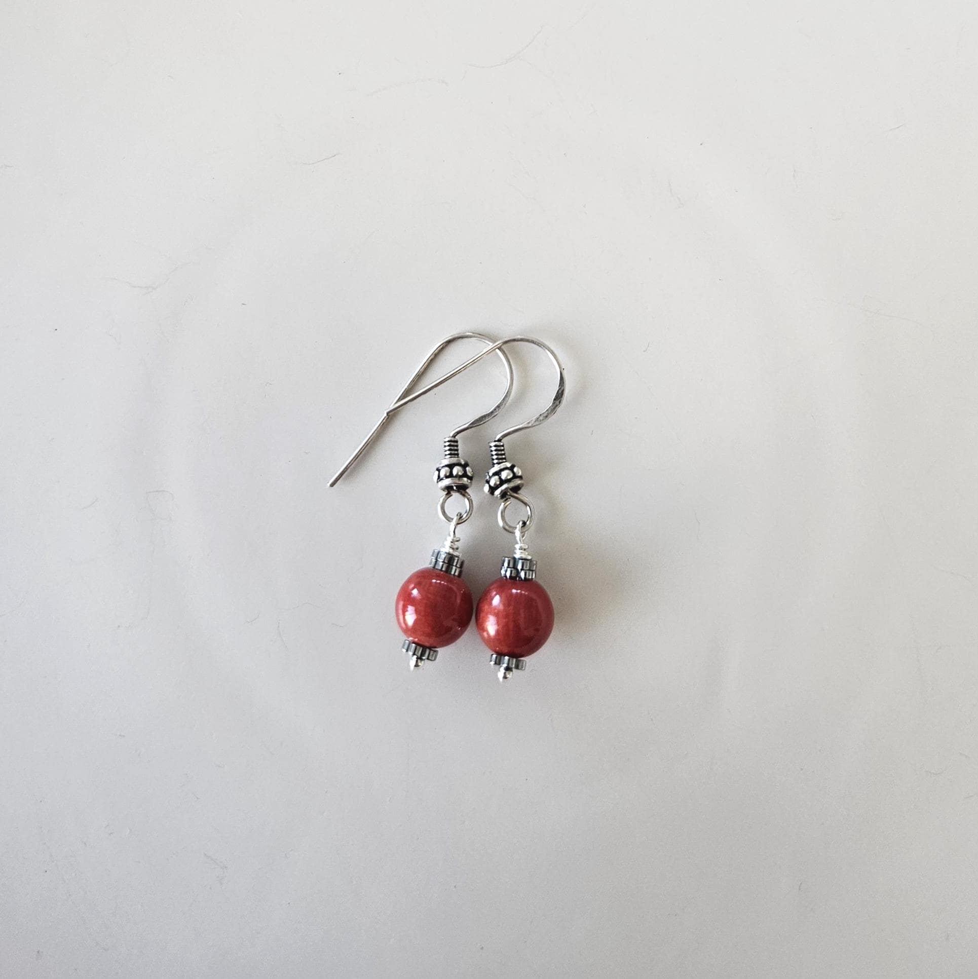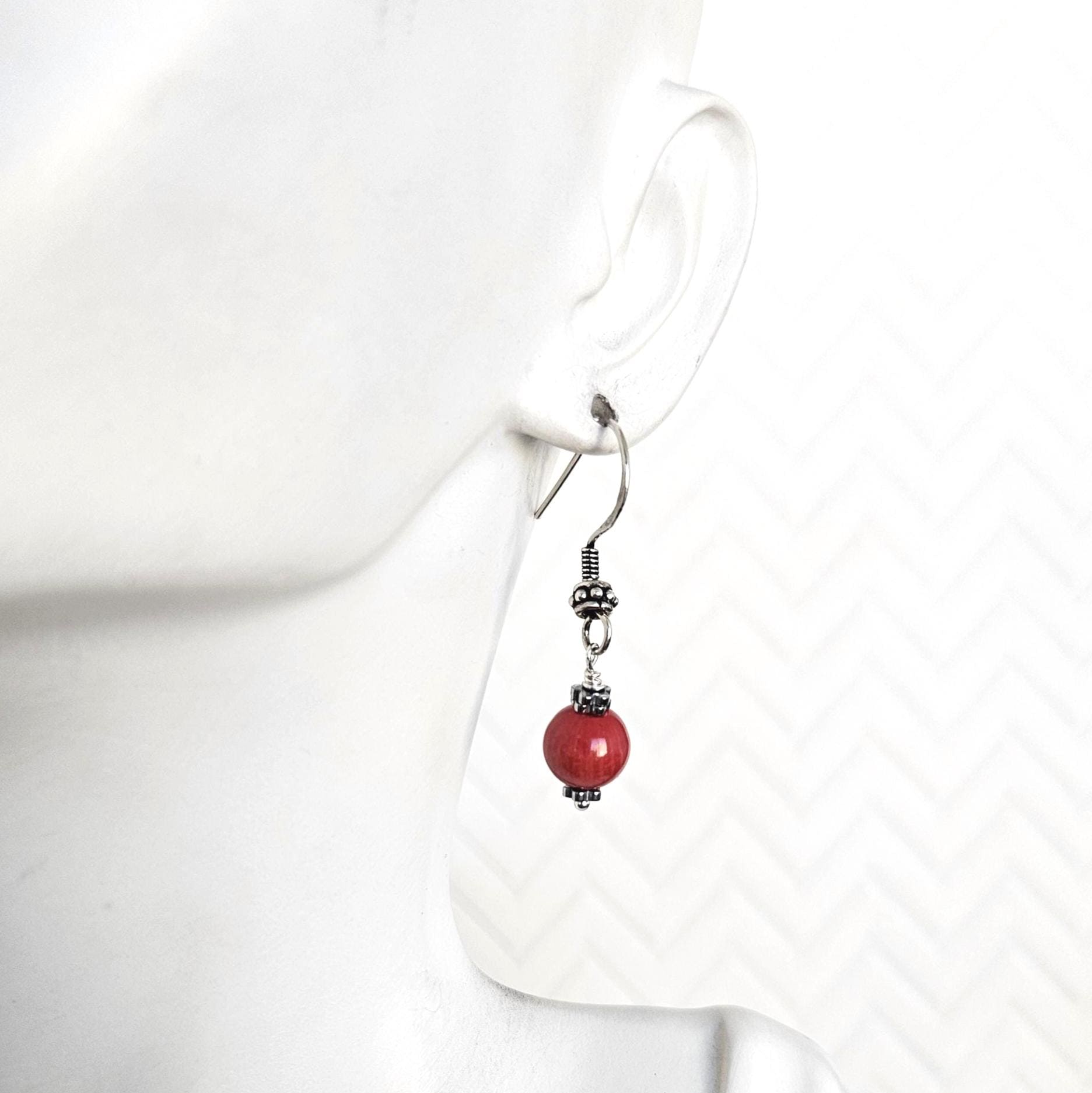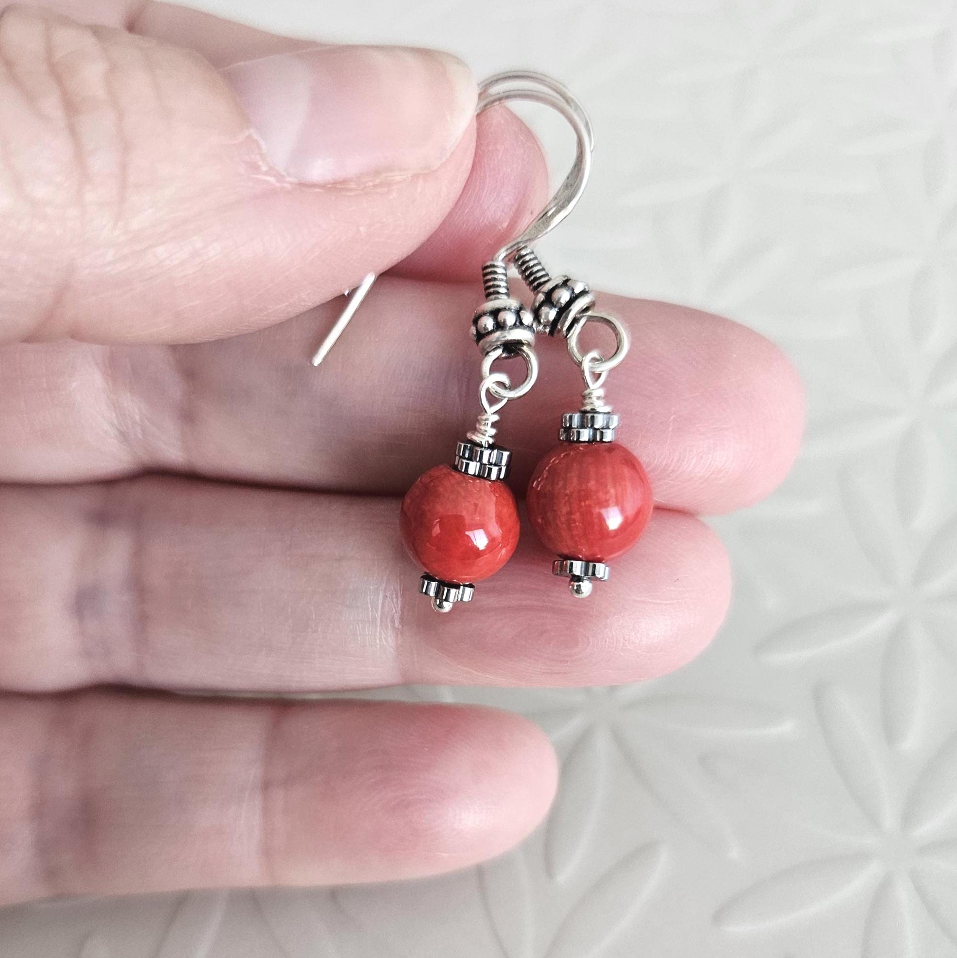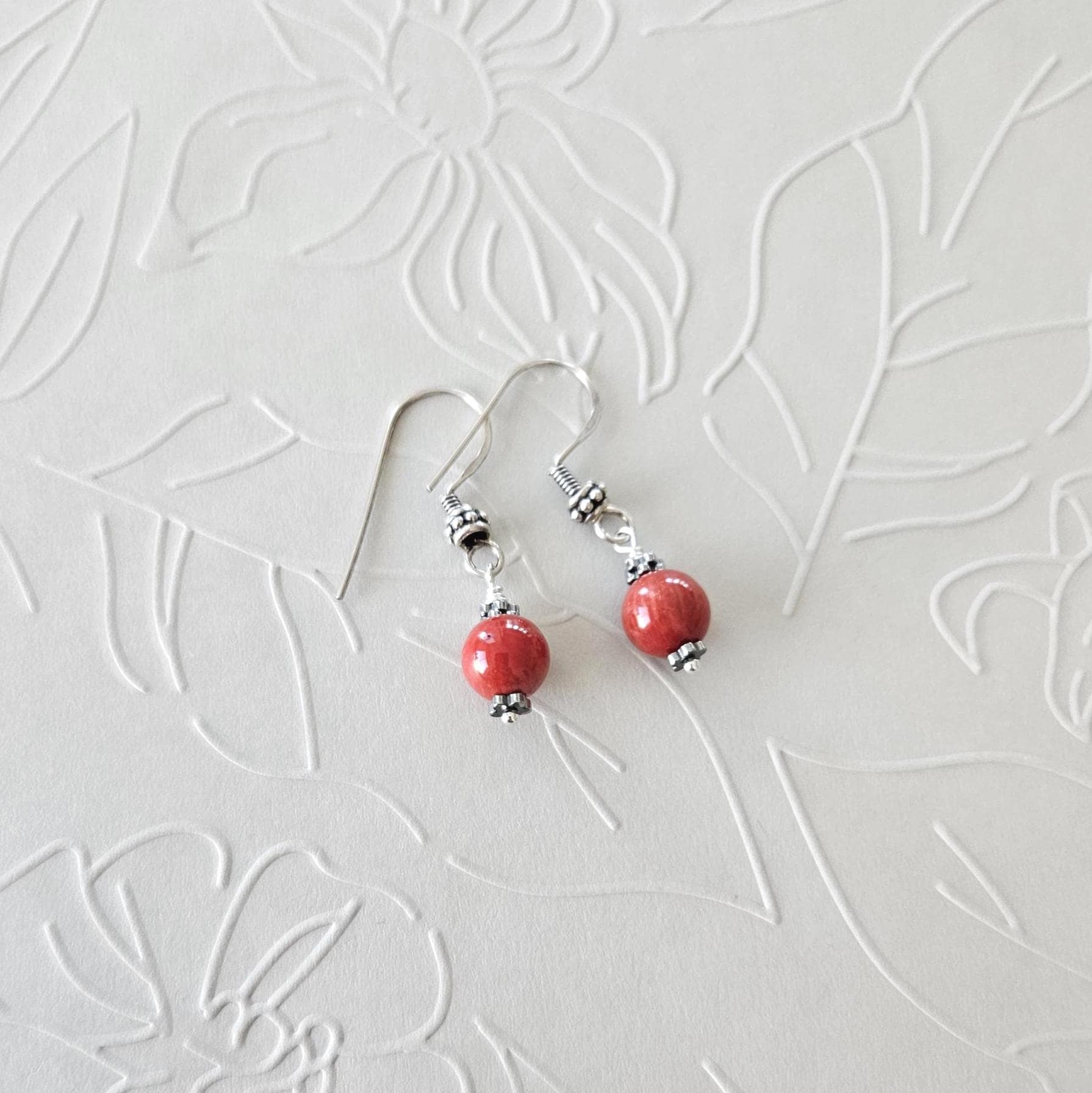 • * • Silver and Bamboo Coral Drop Earrings • * •