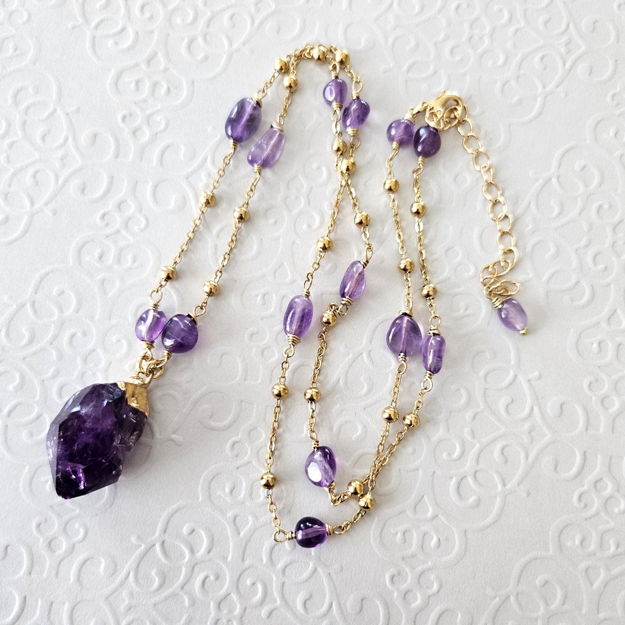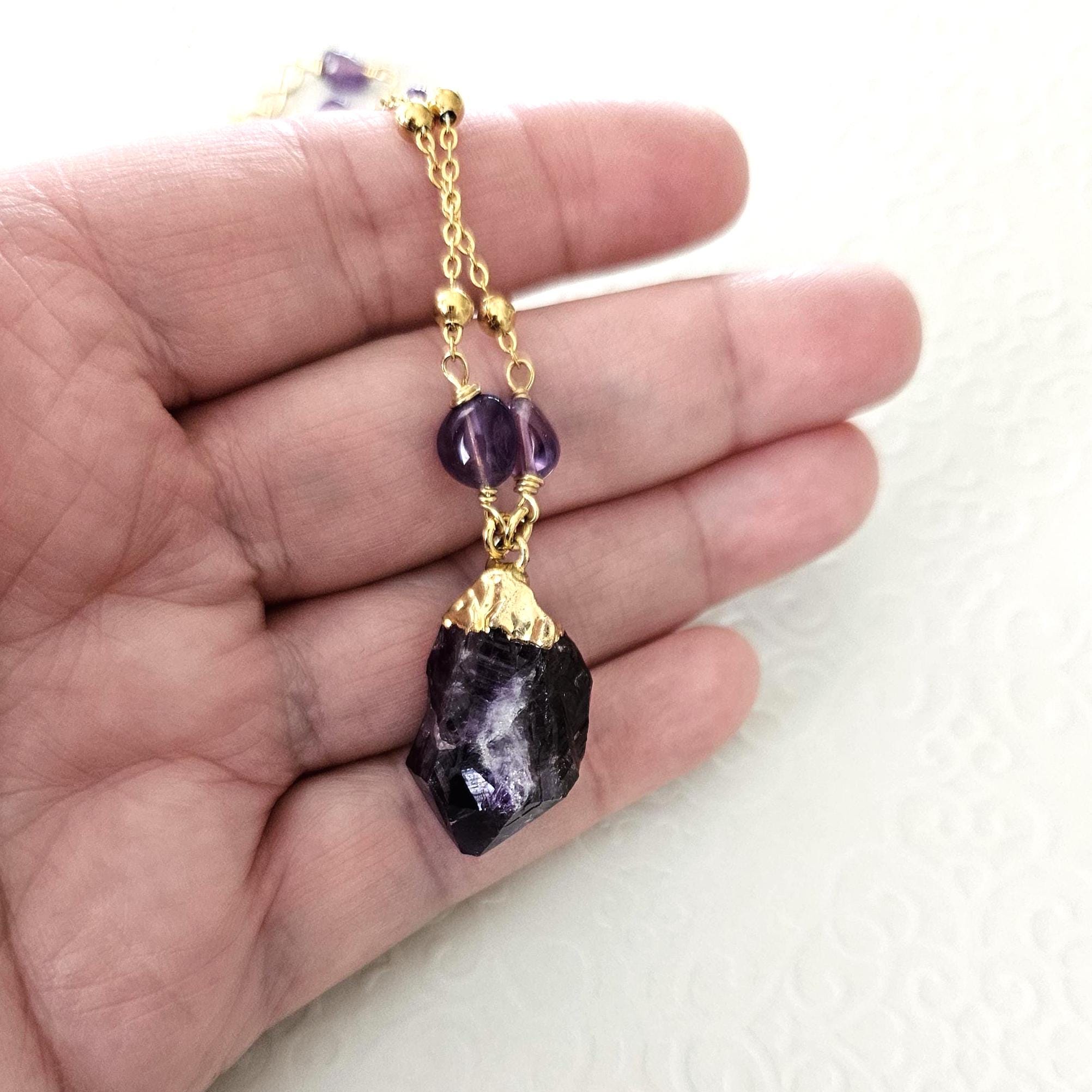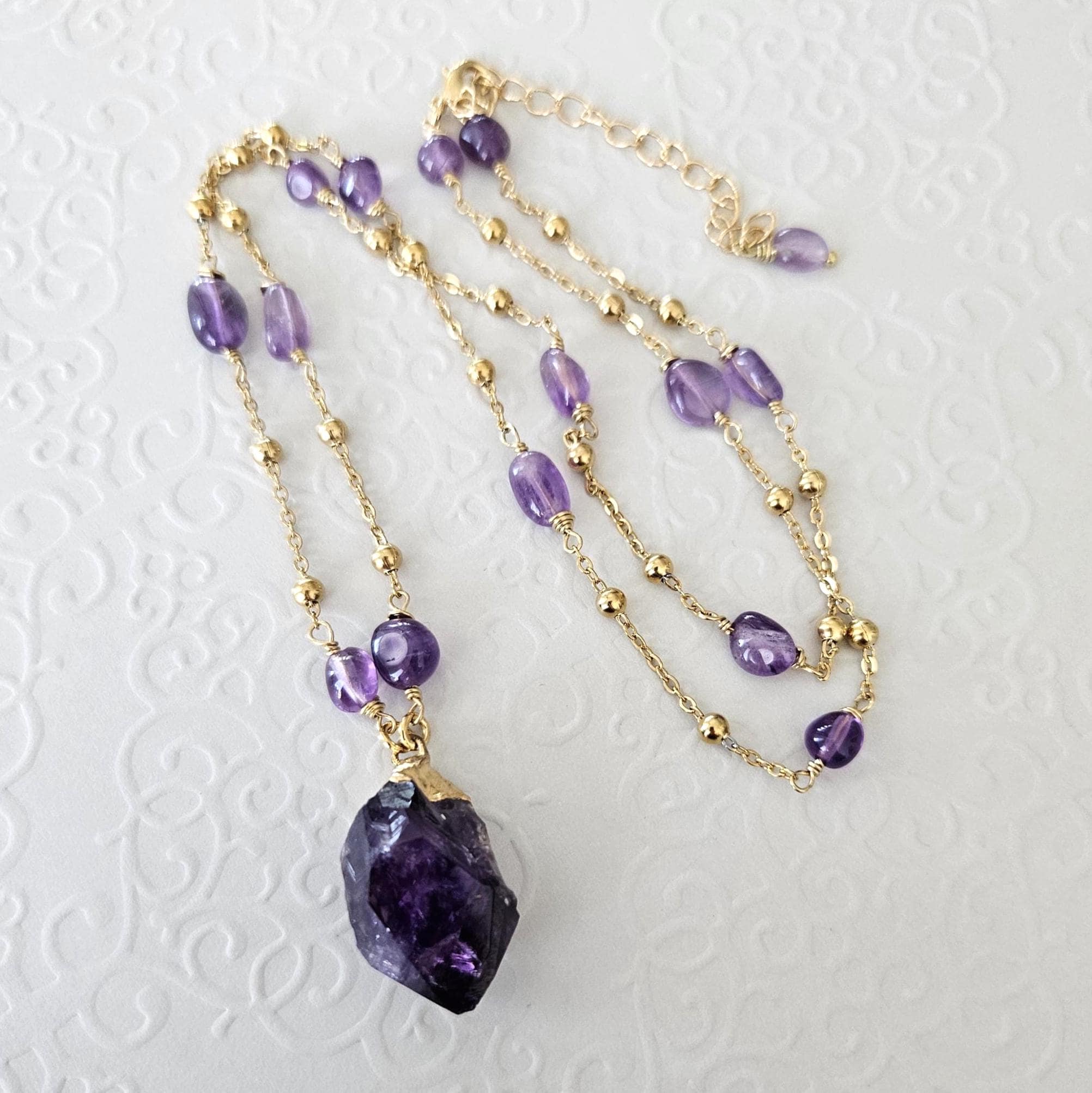 ~ ♦ ~ Raw Amethyst Pendant & Nuggets Wire-wrapped Necklace ~ ♦ ~