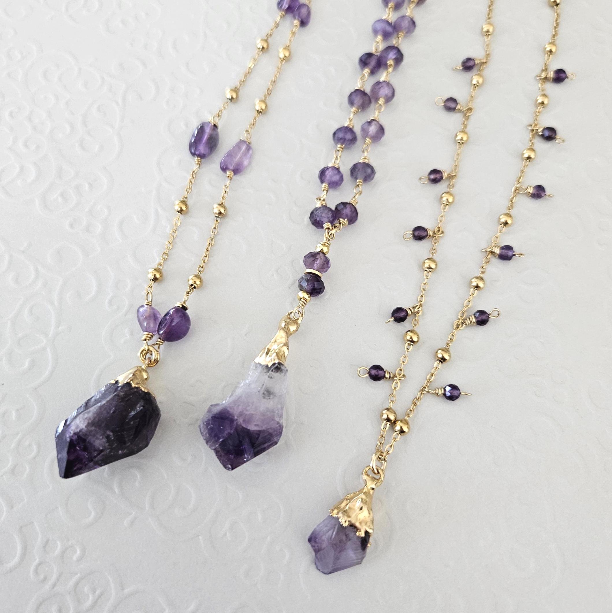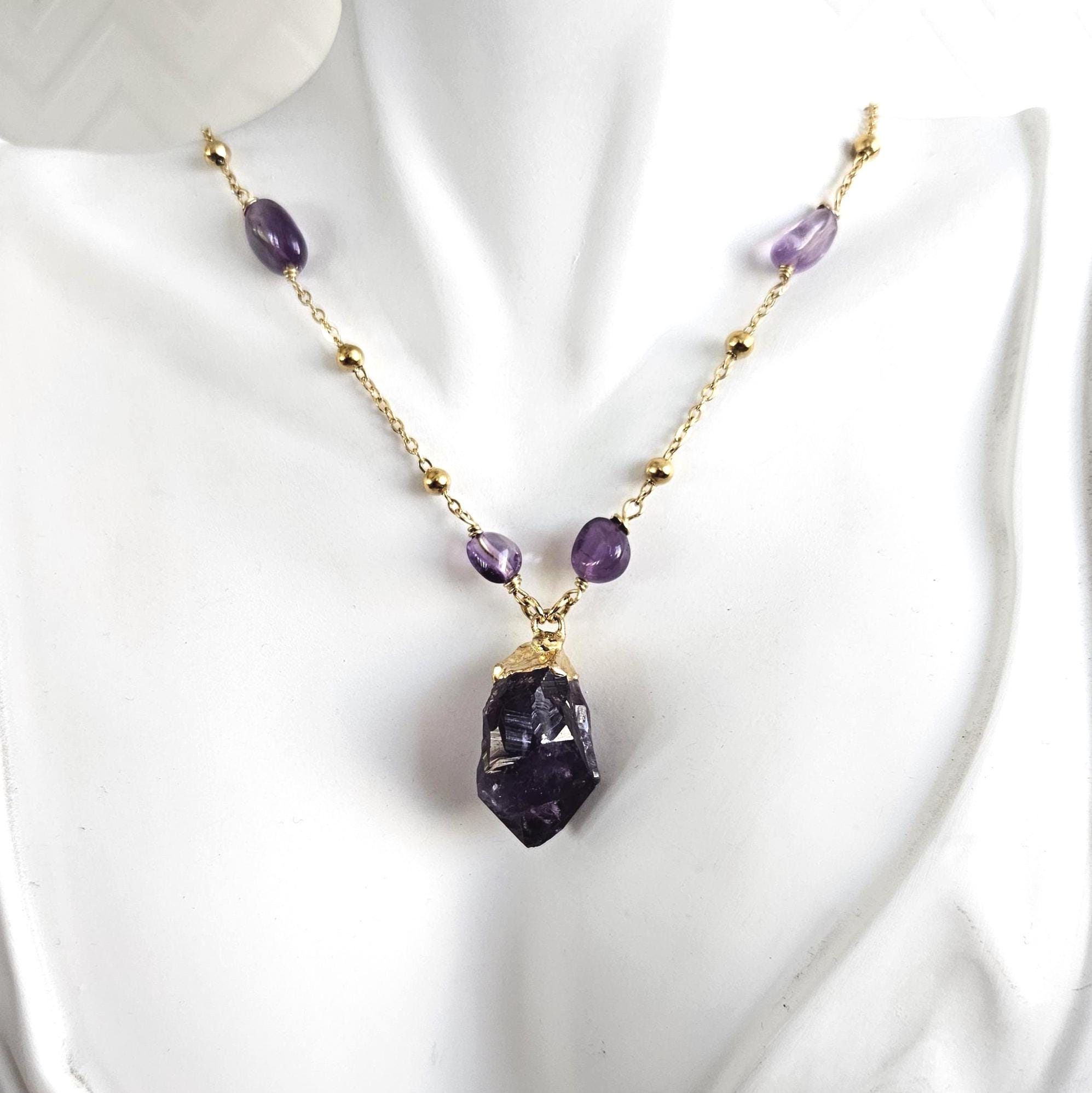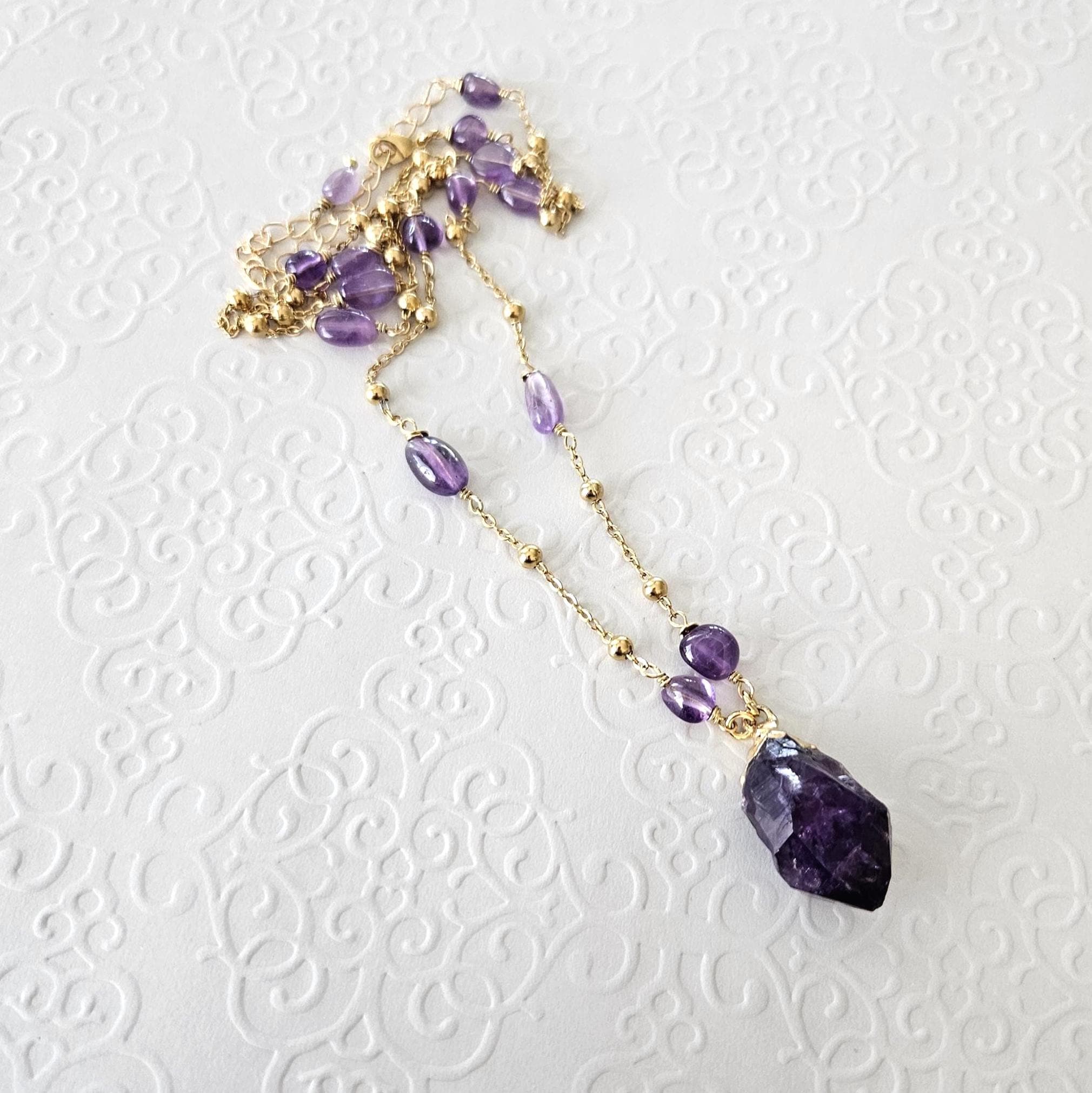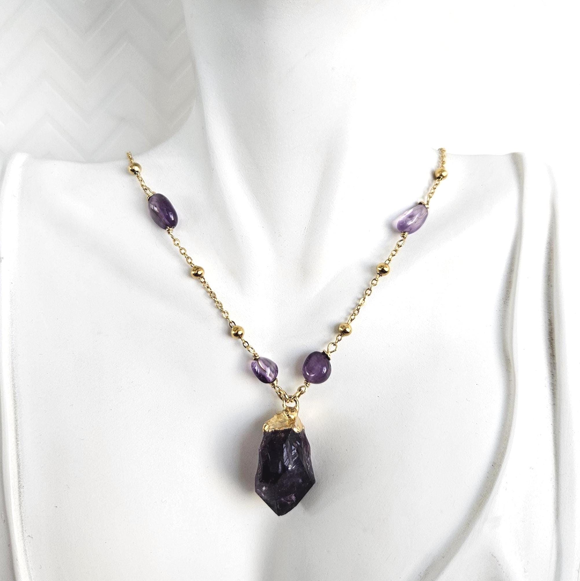 ~ ♦ ~ Raw Amethyst Pendant & Nuggets Wire-wrapped Necklace ~ ♦ ~