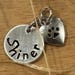 I cannot stamp on both sides of a disc/bar/square because the impression of each letter/number/symbol will ruin the stamping on the other side. Each letter/number/symbol is stamped by using steel stamps struck by a hammer making an impression in the metal, similar to embossing.