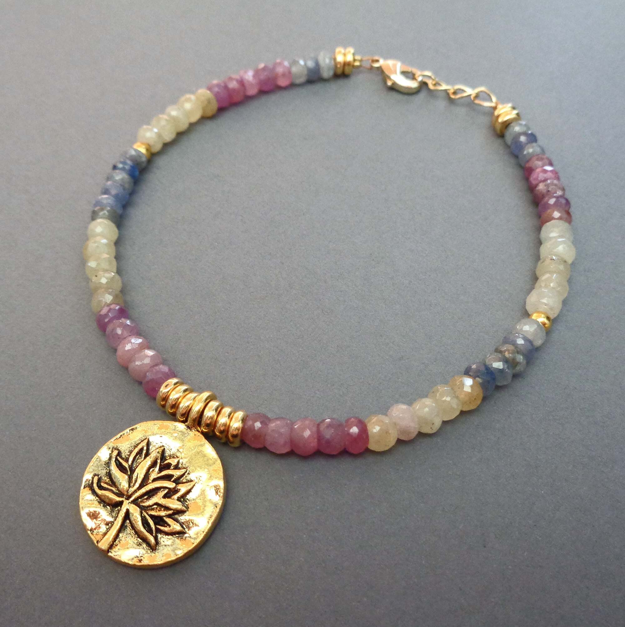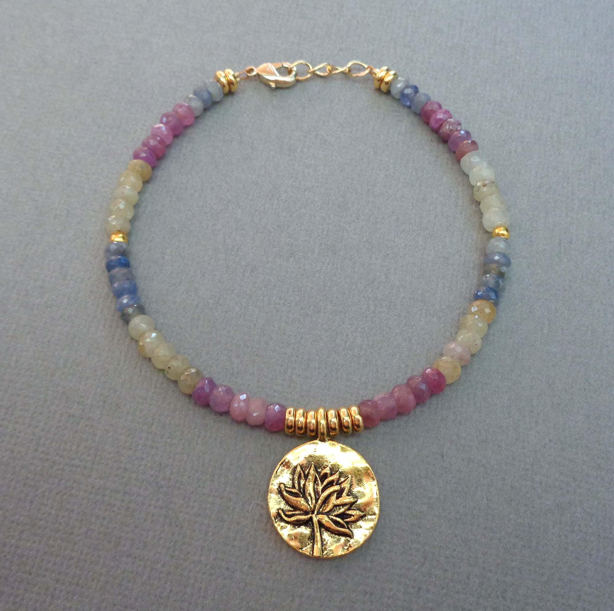 ~ ♦ ~ Multi-color Tourmaline and Lotus Charm Bracelet ~ ♦ ~