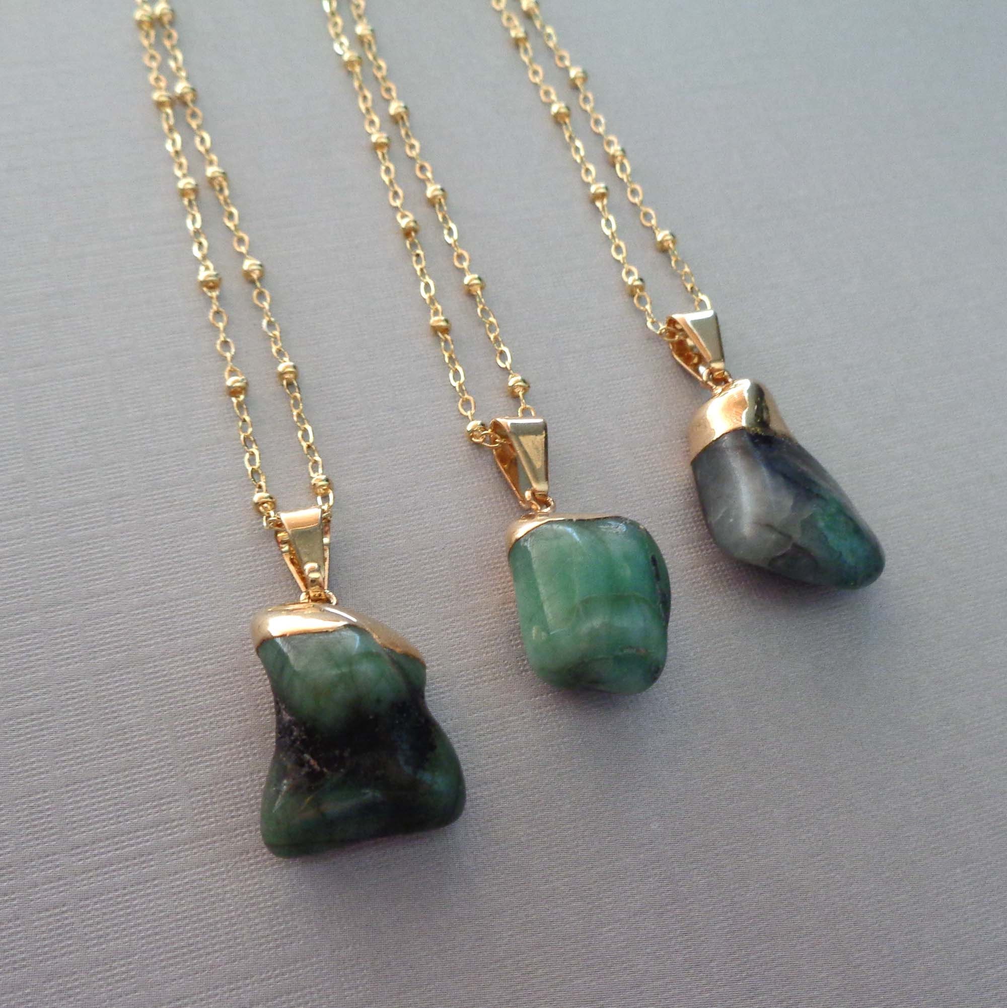 • Natural Tumbled Emerald on Gold-filled Chain •